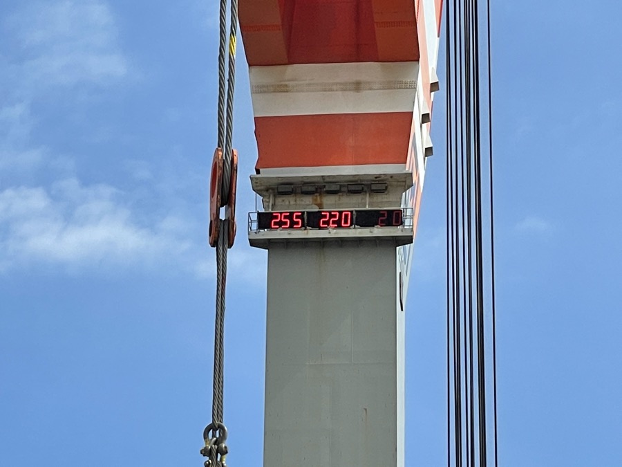 Veiligheid voor alles, en dat betekent dat de genodigden en ik onder een tent moeten gaan staan zodat het blok het dok in kan worden gehesen en de kiellegging van de Seven Seas Grandeur kan gaan plaatsvinden. Zodra de kraan over de rails gaat bewegen, rinkelen de alarmbellen en rijdt de kraan zich vrij vlot richting het bouwsel in het droogdok dat er al ligt. En binnen een 10 minuten is het blok vrijwel in het dok gehesen! Overigens komen veel Fincantieri medewerkers kijken bij dit gedenkwaardige moment.