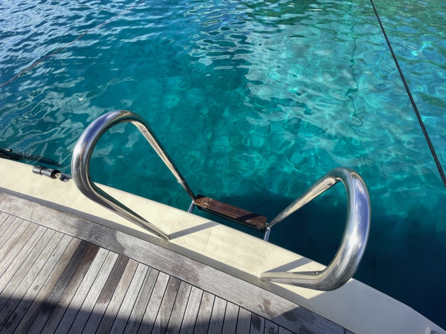 Elke dag last kapitein Mario een zwemstop in, waarbij het schip dicht langs de oever een plekje zoekt. Vanaf de fantastische marina, het platform aan de achterkant van het schip, spring je zo de zee in! Mocht je dat te koud vinden, dan kan je ook rustiger met één van de twee trappen het water in.