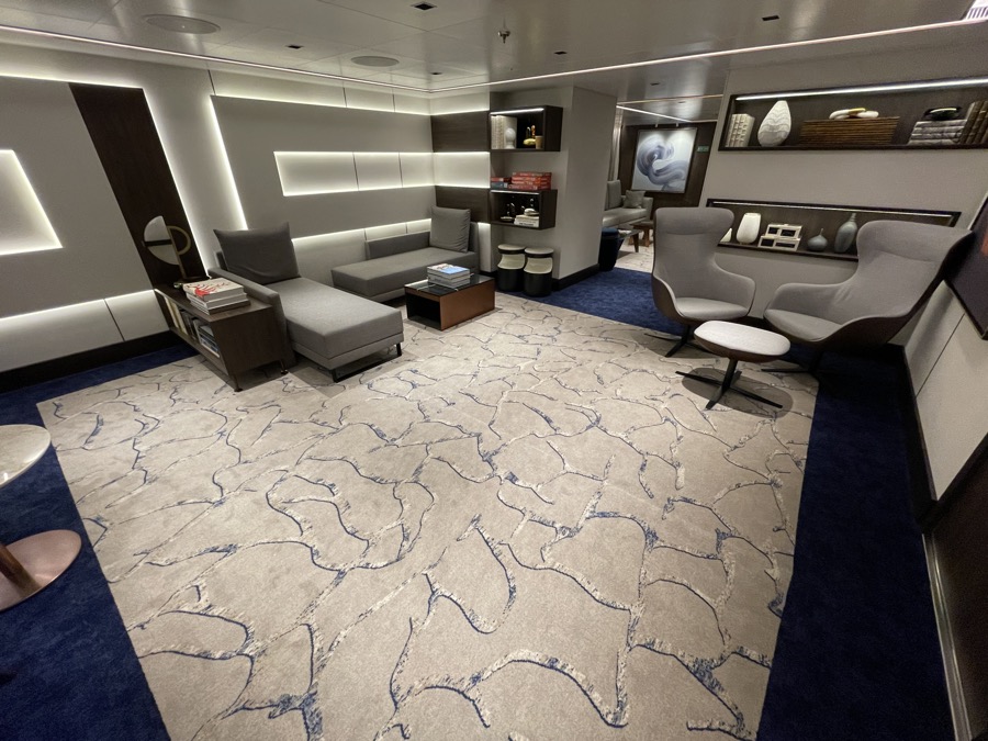 Tevens heb je exclusieve toegang tot de aangrenzende Studio Lounge. Dit is een gedeelde privé-ruimte waar je kan ontspannen, een drankje kan doen, roomservice kan bestellen, op een groot scherm televisie kan kijken en je mede-soloreizigers kan ontmoeten. Gratis koffie, espresso en snacks zijn de gehele dag beschikbaar. Vanwege de gunstige prijs voor soloreizigers en het beperkte aantal studio’s is het raadzaam om snel te boeken. De binnenhutten liggen op dek 12 en 13.