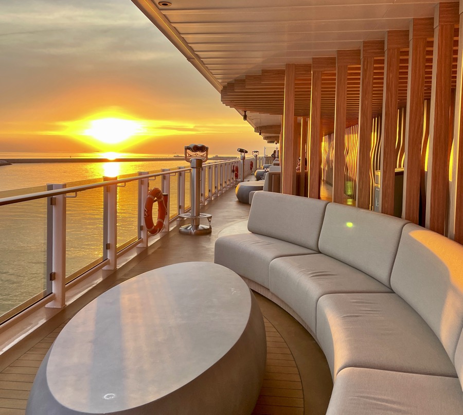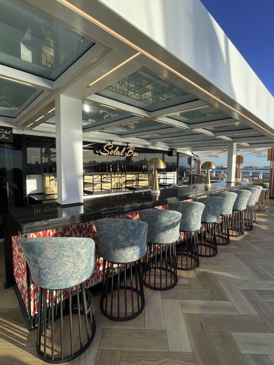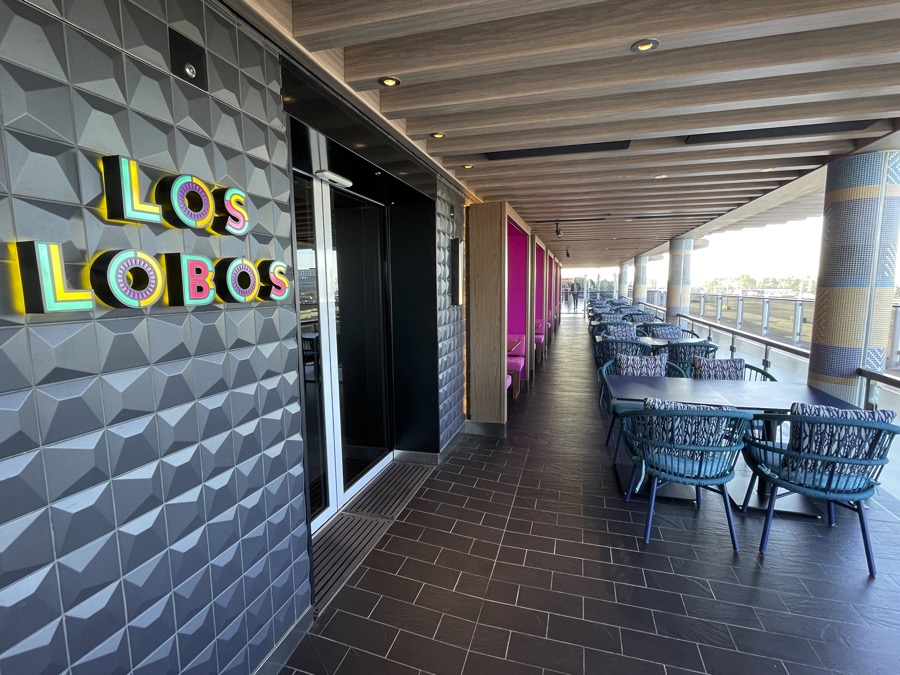 Wanneer we naar het midden van het schip lopen, liggen aan de bakboordzijde (links in vaartrichting) de buitenterrassen van enkele restaurants zoals Los Lobos (toeslag), Local Bar & Grill (inclusief), en Onda by Scarpetta (toeslag).