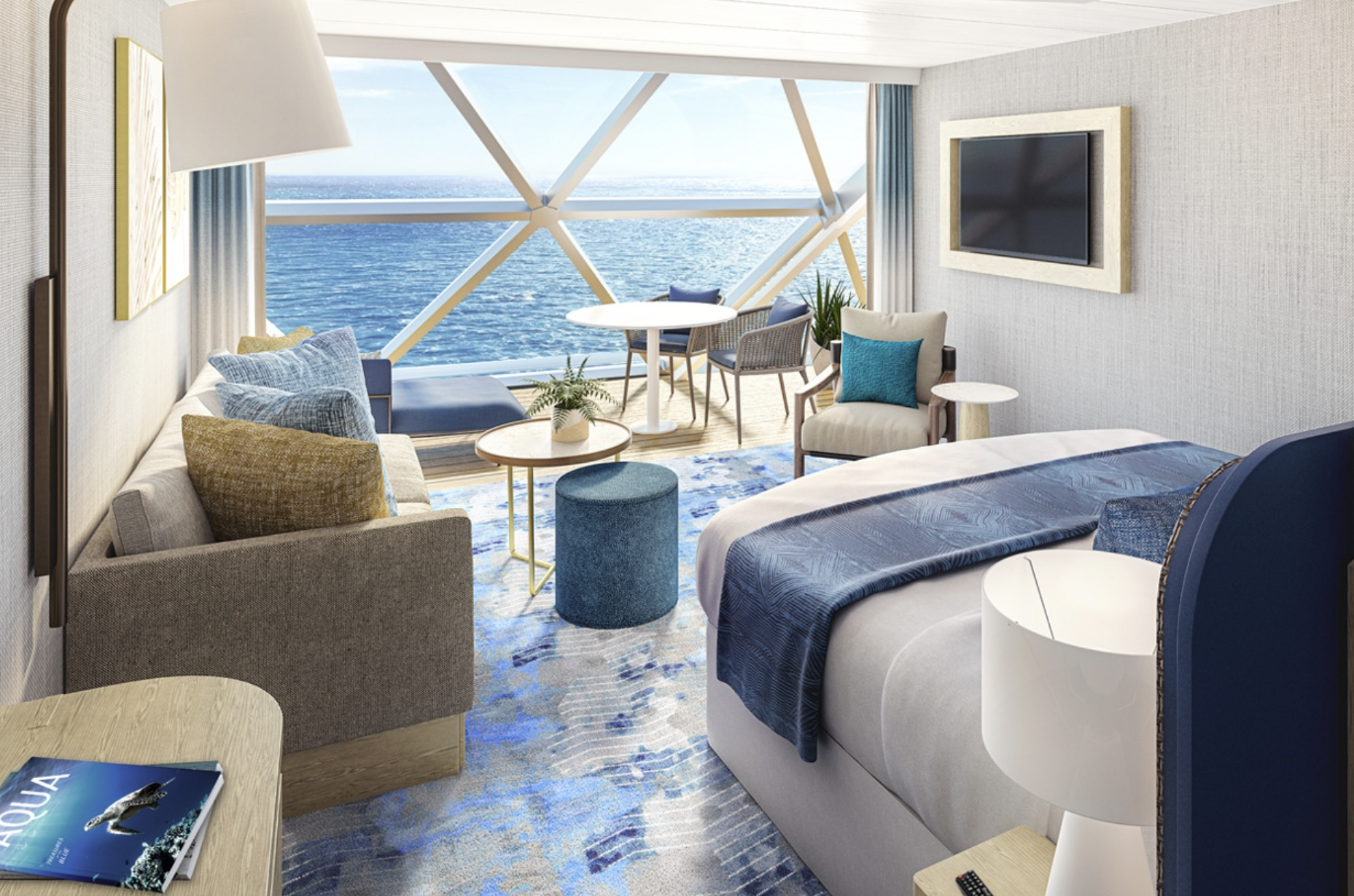 Meer hutten dan ooit aan boord, hebben uitzicht op de oceaan. Nieuw zijn de infinity balkons, die een inpandig balkon hebben: