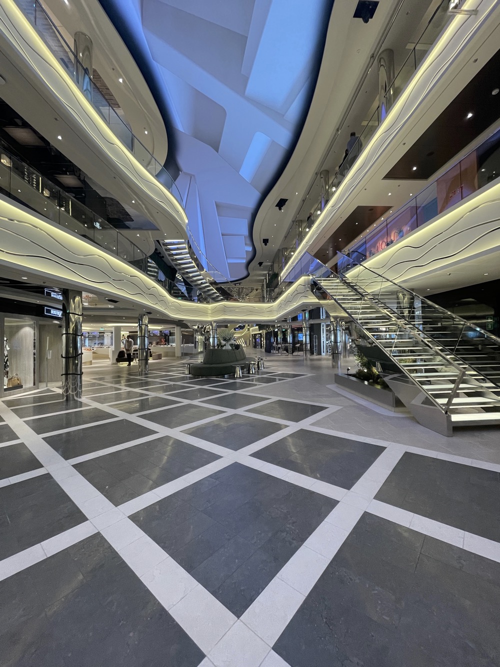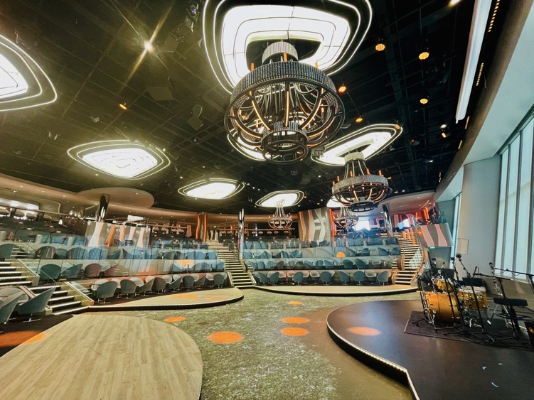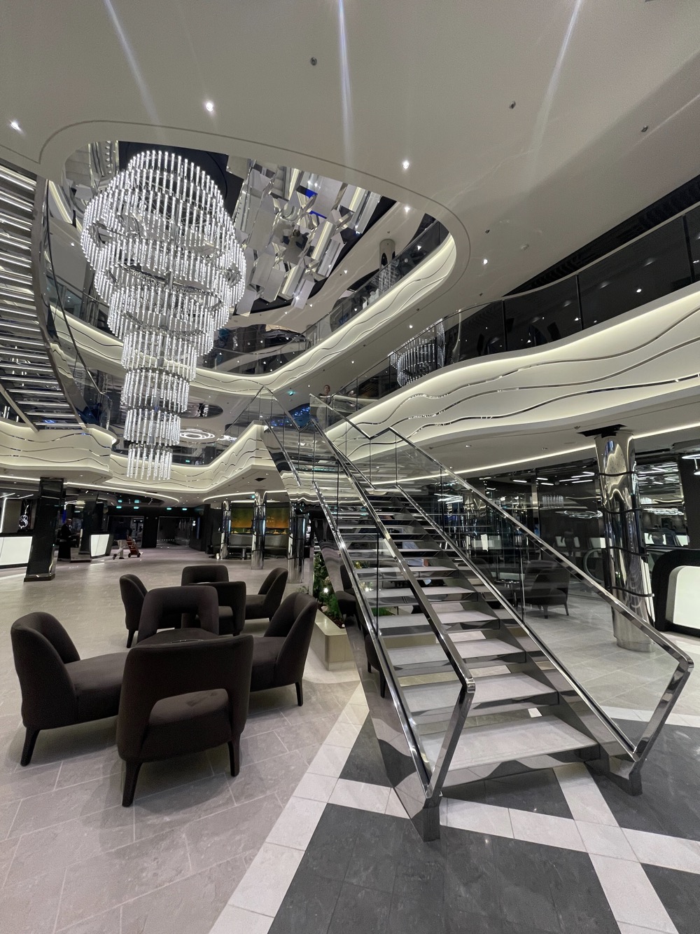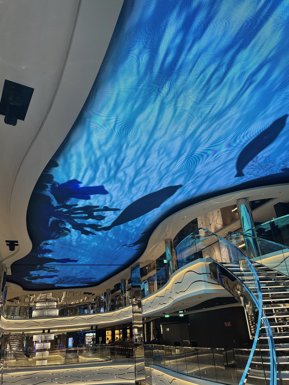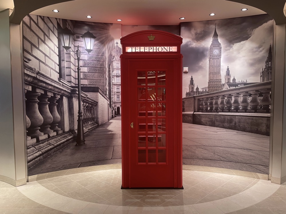 Ik noemde het net al kort: de binnenpromenade die World Galleria heet. De Galleria is het bruisende binnenhart van het schip en omvat drie dekken met winkels, restaurants en bars. Je vindt hier de leukste bars zoals Masters of the Sea, Champagnebar Fizz, cocktailbar Elixir en voornamelijk de specialiteitenrestaurants. Het LED dak strekt zich op dit schip niet meer over de gehele lengte uit, maar een kleiner gedeelte en doet zich in de ochtenduren voor als aquarium waar je zeehonden of walvissen ziet zwemmen. Erg mooi. De lijnen van de Galleria doen je ook denken aan de zee en golven. P.S. De rode telefooncel aan het einde van de Galleria is een geheime doorgang naar de speciale party-locatie elders op het schip. Gasten worden daarvoor geselecteerd en mogen dan met een muntje en paswoord door de telefooncel naar binnen ….