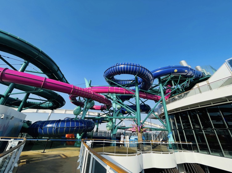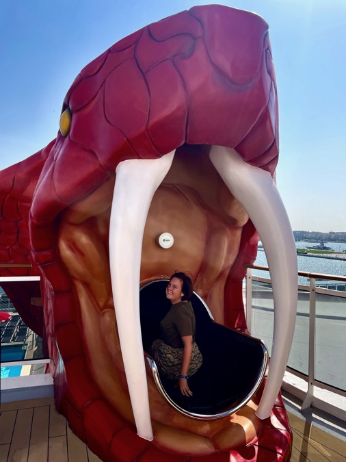 Hoogtepunt en niet te missen op de World Promenade is de glijbaan, de Venom Drop @ The Spiral, die 10 dekken (van dek 20 naar 8, maar zonder dek 13 en 17 die niet bestaan) naar beneden gaat. Erg leuk door de doorzichtige gedeelten zodat je niet compleet in het donker glijdt, zoals bij andere rederijen het geval is.