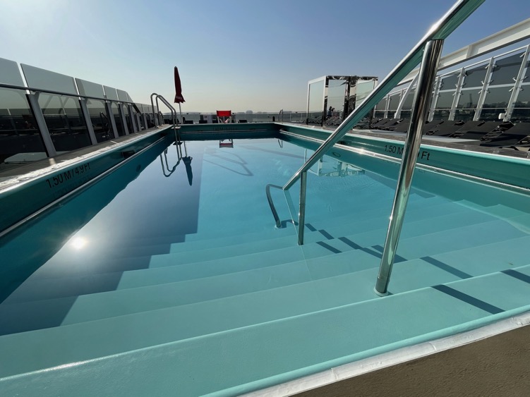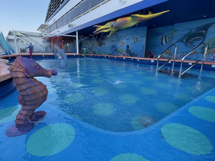 De MSC World Europa heeft 5 grote zwembaden en 2 voor kleine kinderen. Om met de laatsten te beginnen: deze tweec kinderzwembaden zijn van verschillende diepten.