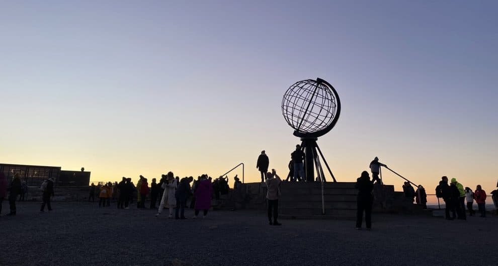 Wij worden echter direct de bus in geloodst, want we hebben de tijd hard nodig tot half 3 om naar de Noordkaap toe te rijden, op 33,3 km om precies te zijn. Bij aankomst zie ik het grote bezoekerscentrum als eerst liggen en daarna het bekende monument, de wereldbol met alle lijnen en meridianen. We hebben 90 minuten de tijd voor het gehele centrum. De meeste tijd gaat toe naar het op de foto gaan met de populaire wereldbol en er ontstaan spontaan wachtrijen waarin mensen netjes te wachten staan totdat ze op de foto kunnen.