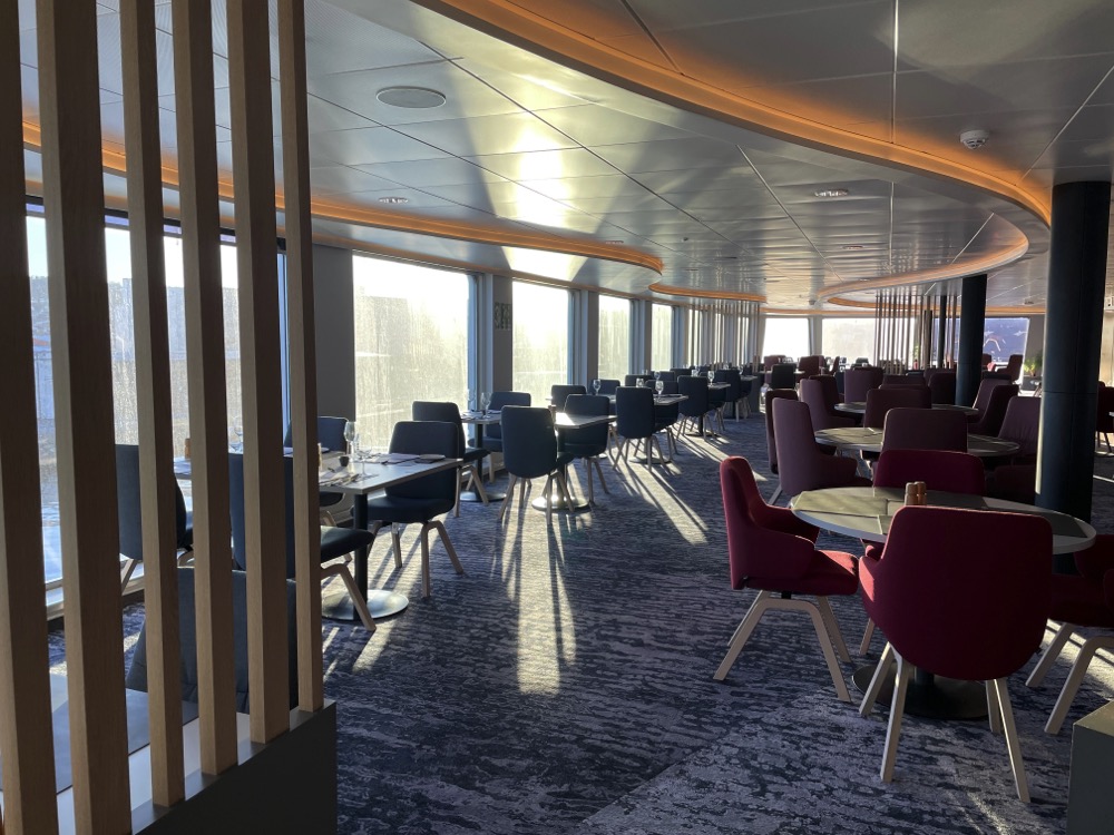 Het hoofdrestaurant Havrand ligt geheel achteraan, maar is door de lengte van het schip (124 meter) eigenlijk vlot te bereiken waar je maar bent op de Havila Capella. Elke gast krijgt een vaste tafel toegewezen waar je kunt ontbijten, lunchen en dineren. Boek je een volledige reis, dan is dit inbegrepen.