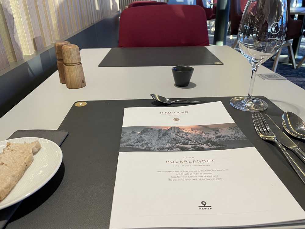 Zoals ik hierboven al even noemde: gasten met het Havila Gold pakket krijgen een diner in het fine dining restaurant Hildring. Je kunt deze ook aan boord boeken voor een avond vol prachtige verfijnde gerechten. Ook in restaurant Havrand geniet je van pure lokale Noorse specialiteiten. Onder de naam Food Stories heeft elk traject van de reis een eigen menukaart, waarop kleine gerechten staan uit die streek. Je kiest uit deze menukaart diverse kleinere lokale gerechten (meestal 4 of 5), die dan naar je tafel toegebracht worden. Heb je daarna nog meer trek, dan kan je altijd bijbestellen. Ik sprak met de expeditieleider kort over dit concept, en het mooie is dat de voedselverspilling (in tegenstelling tot een buffet) hierdoor met 80% afneemt.
