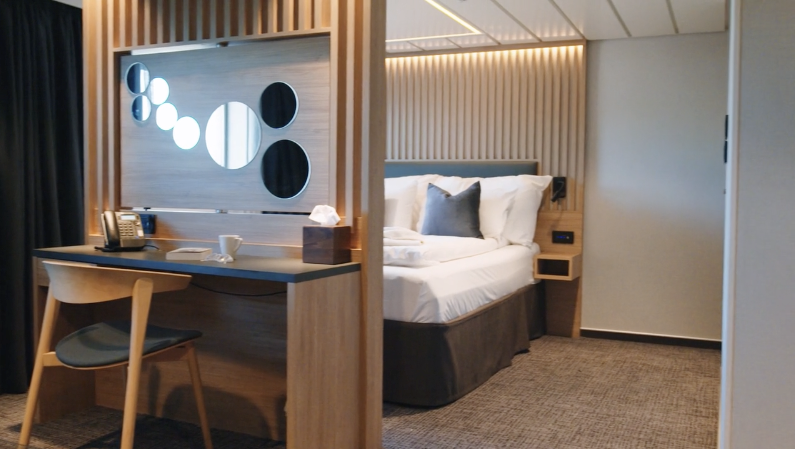 Aan boord van de Havila schepen is er voor elk wat wils wat betreft hutten. Je kunt een binnenhut boeken tot en met een luxe suite met whirlpool op het balkon.