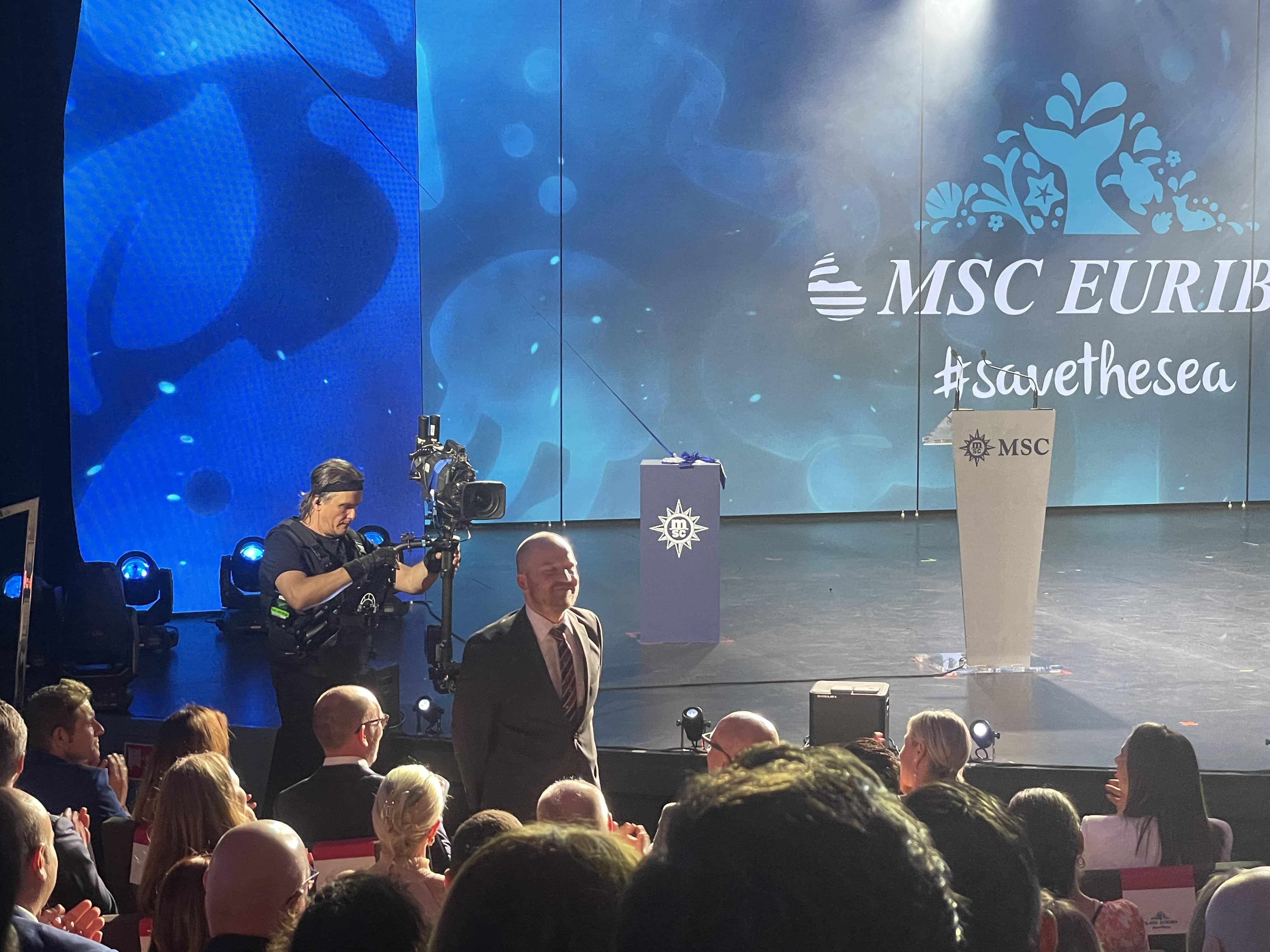 Pierfrancesco Vago, uitvoerend voorzitter van MSC Cruises, en Gianni Onorato, CEO van MSC Cruises, spraken de genodigden toe en benadrukten de verduurzamingsslag die dit schip laat zien.