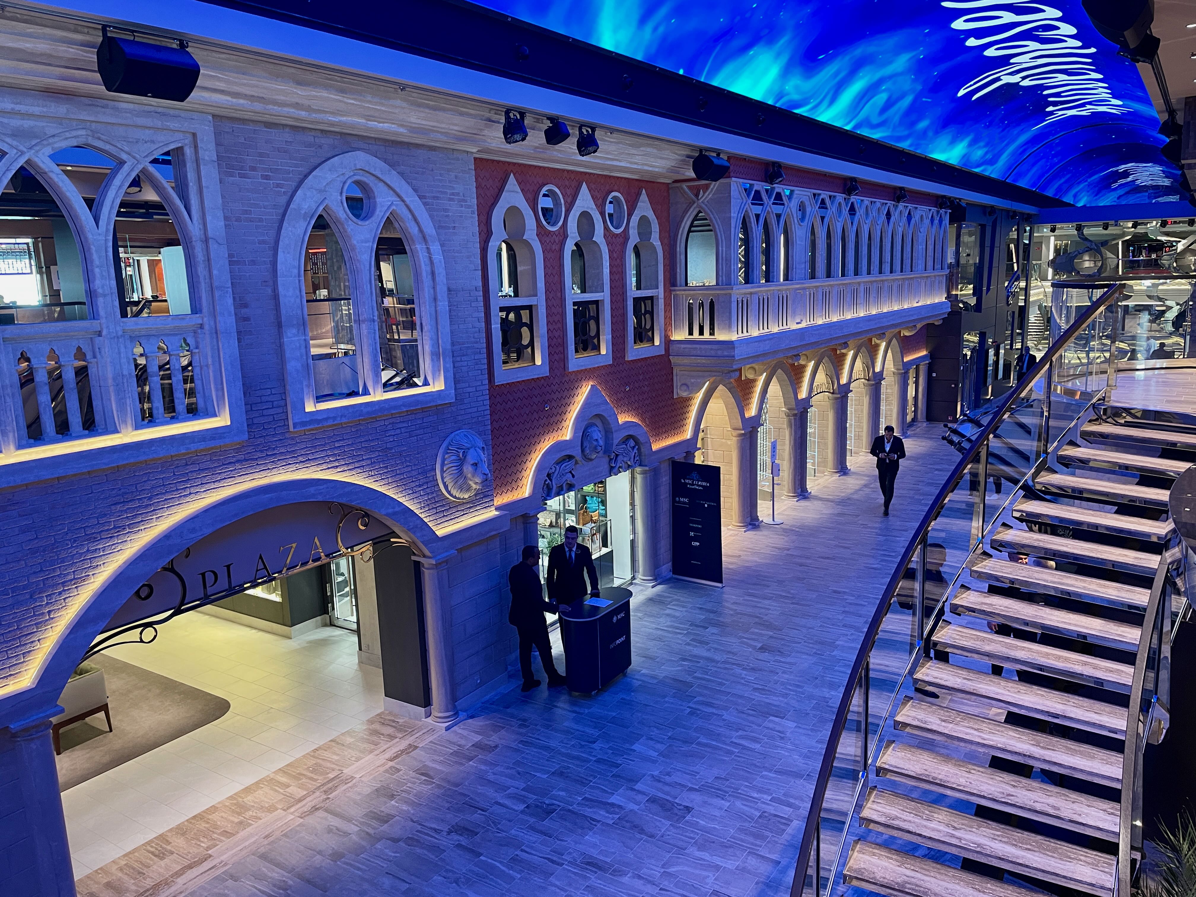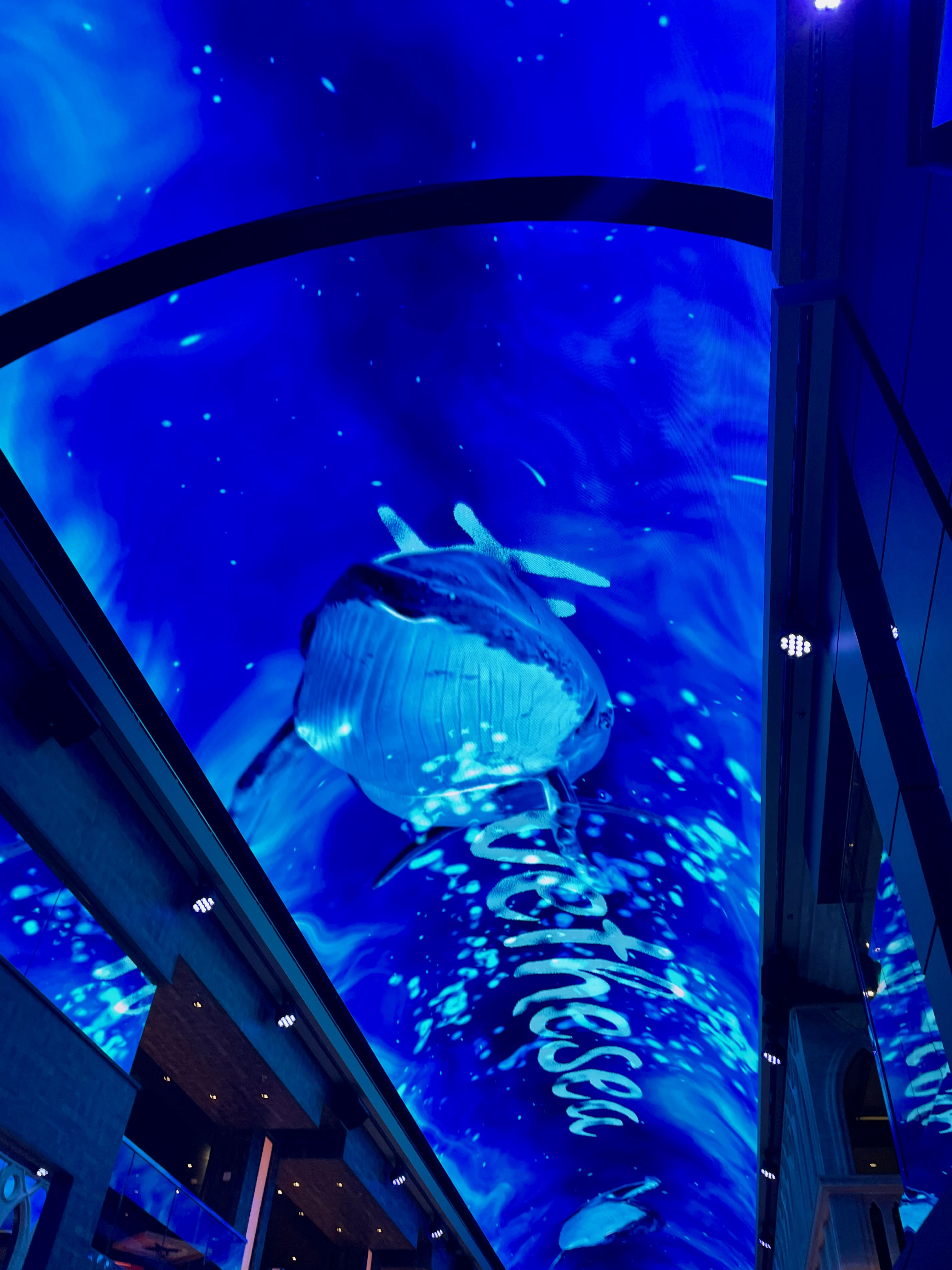 De indoorpromenade is een hoogtepunt op de MSC Euribia. Het LED dak is wederom een prachtplaatje. Op de Euribia kwamen de eerste dagen geweldige walvissen voorbij zwemmen.