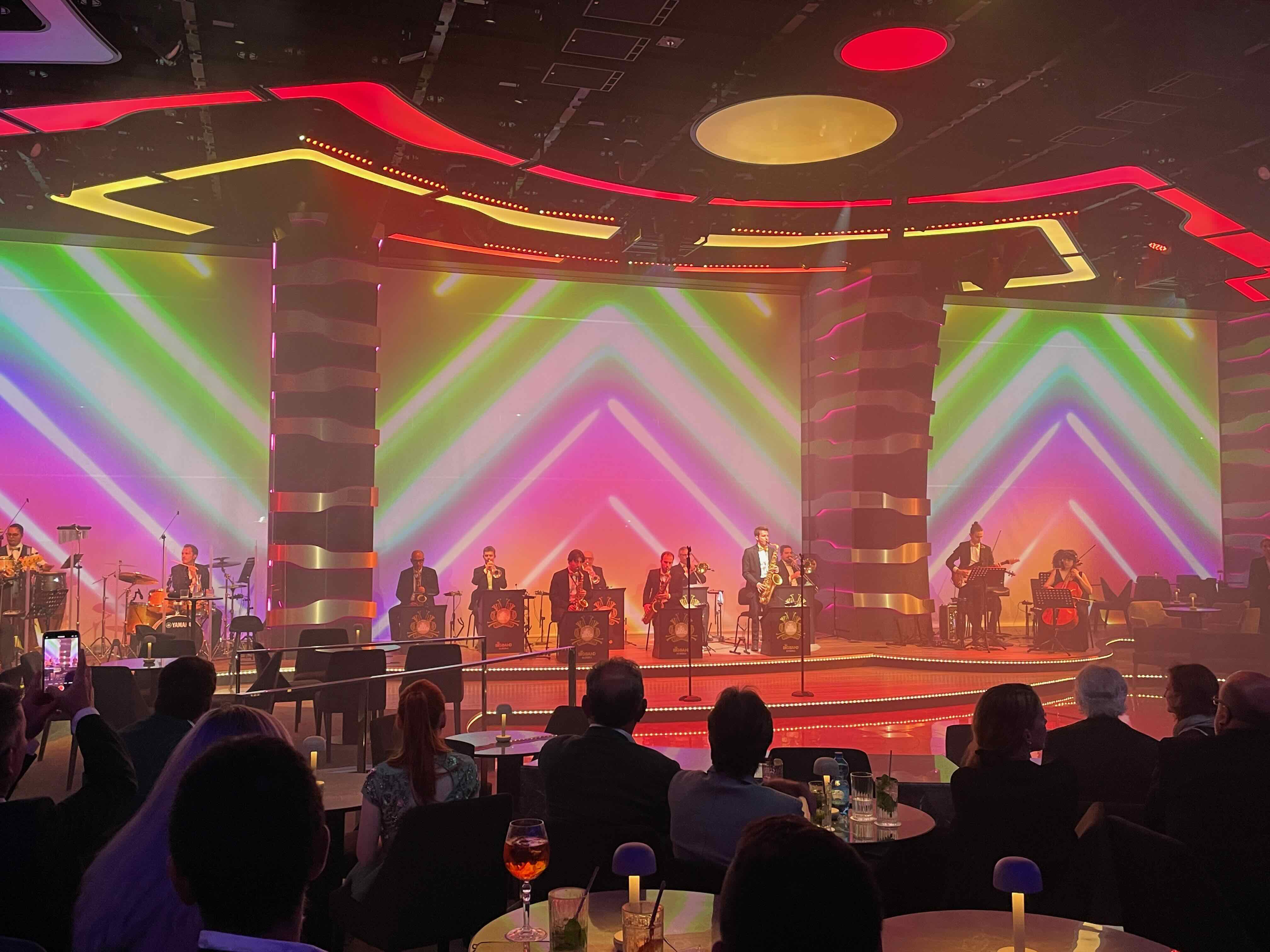 Je vindt hier in de avond de nieuwe Big Band, die uit 19 muzikanten bestaat. Driemaal per avond treden zij op met een wervelende show waar je uiteraard ook los mag gaan op de dansvloer.