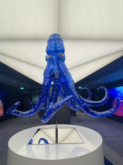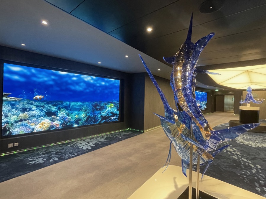 Op een klein aantal plekken vind je bovendien kunstwerken met een duurzaamheidsthema, zoals in de gang naar de restaurants op dek 6: daar staan drie kunstwerken die gemaakt zijn van kunststof PET flessen door kunstenaar Danilo Marchi.