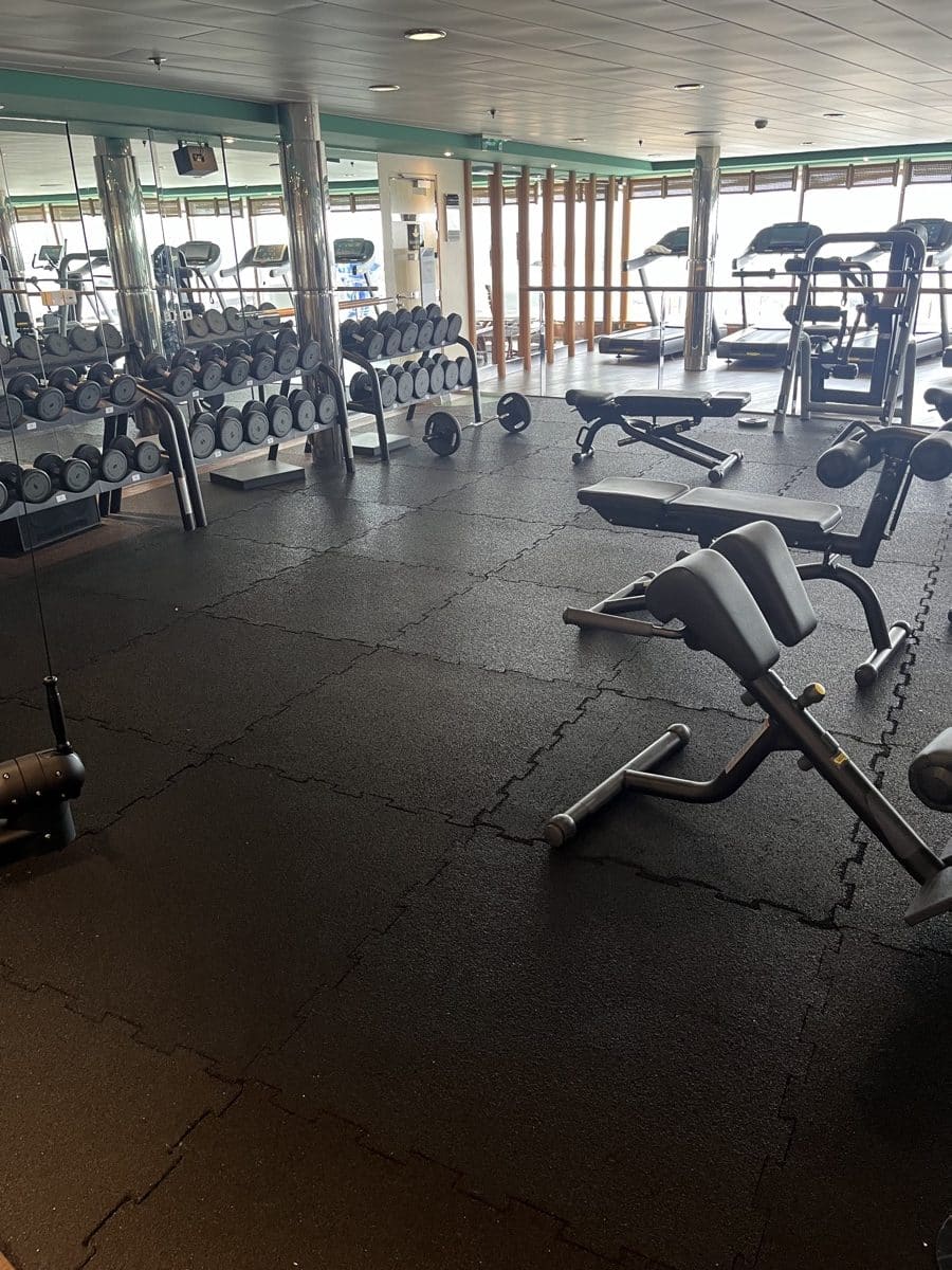 De Gym bevindt zich op voorop het schip op deck 11. Alleen gasten van 13 jaar en ouder zijn hier welkom. Er wordt gevraagd om maar 20 minuten per apparaat te gebruiken, omdat het vaak druk is op de zeedagen. Ik heb zelf geen gebruik gemaakt van de Gym, maar vele gasten liepen regelmatig in de sportkleding op het schip rond, fanatiek hoor, zo op vakantie!