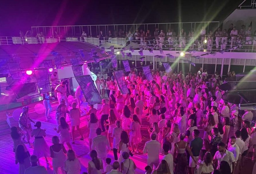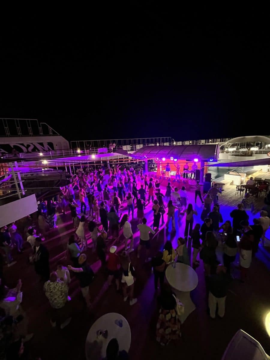 MSC staat natuurlijk bekend om haar white party’s, erg leuk dat deze niet binnen zijn, maar boven op het deck bij het zwembad. Top sfeer!