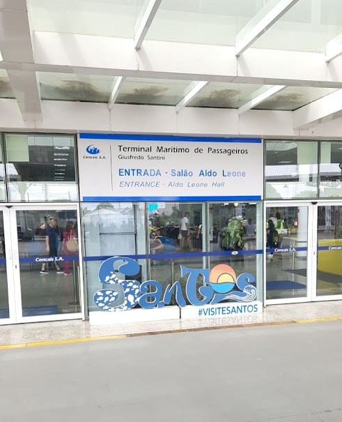 De moderne cruise terminal in Santos kan tot 10 schepen tegelijk aan, zegt men, maar dan is het echt vol. Meestal zijn er niet meer dan vier. Je loopt van je schip naar de terminal. In de terminal is een geldautomaat.