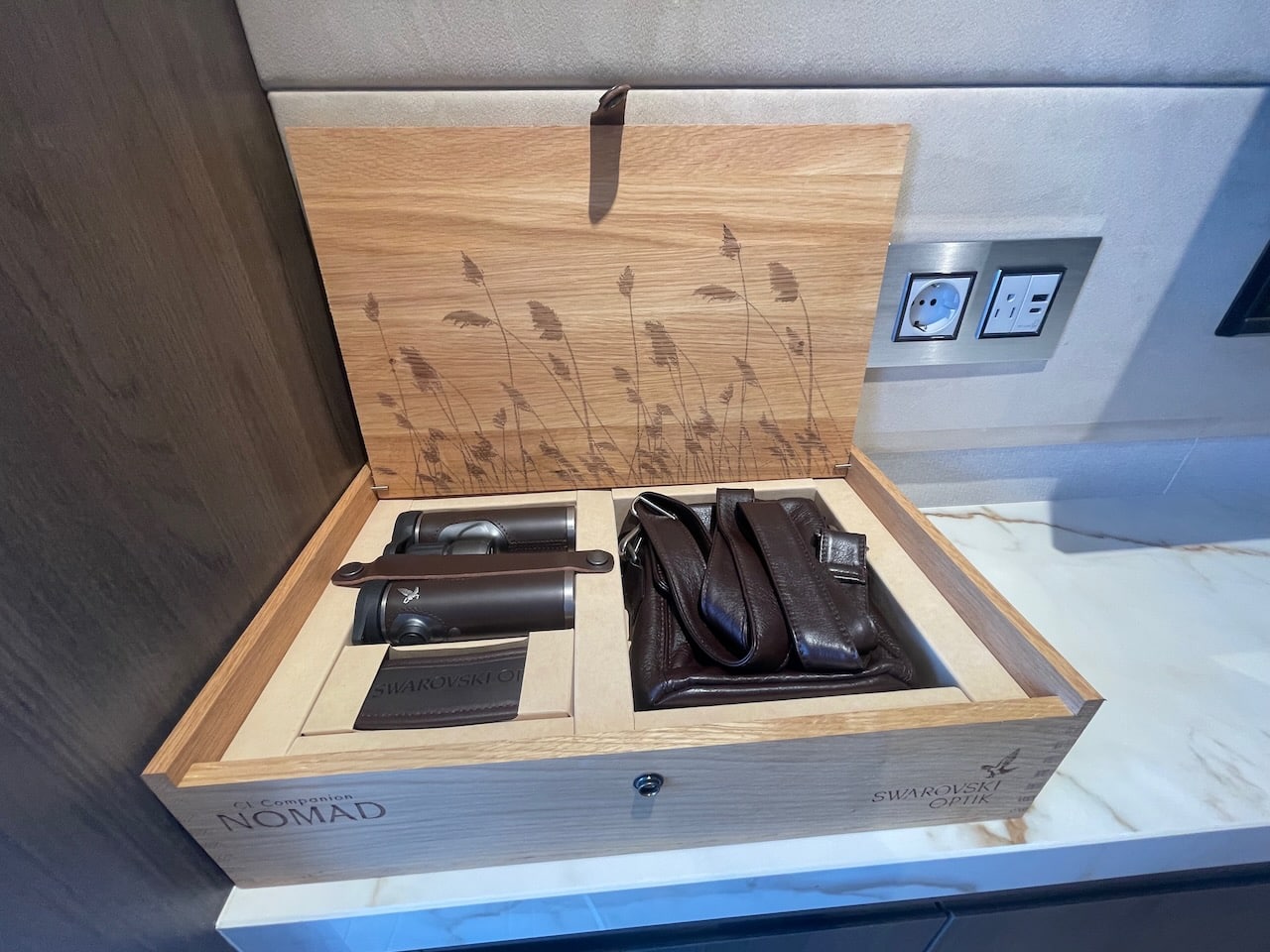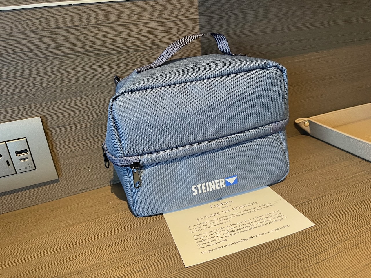 De extra’s zijn bijvoorbeeld een sporttas van Technogym en een geavanceerdere verrekijker, in dit geval van Steiner.