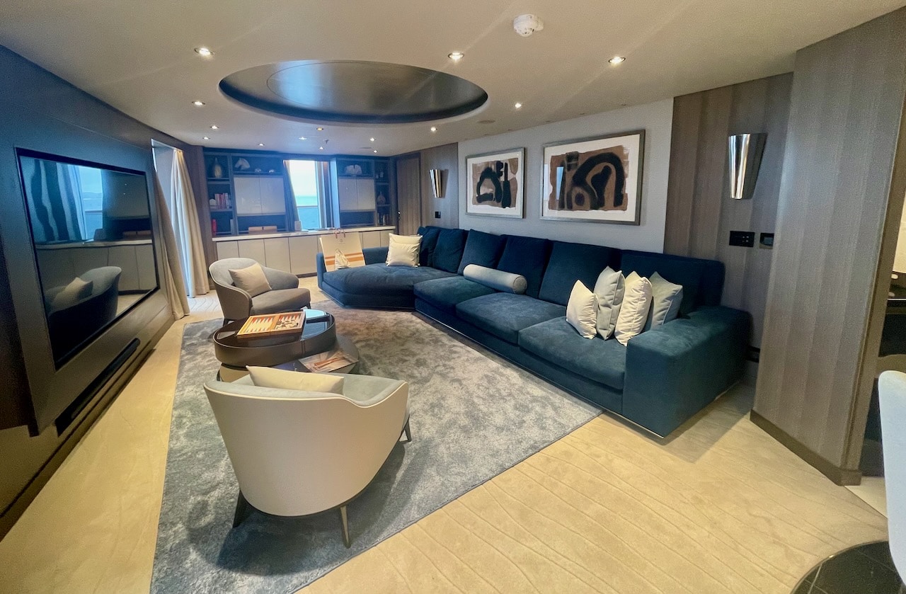 Gasten krijgen tal van extra’s in deze suite, waaronder vervoer van/naar vliegveld, hotelovernachting voorafgaand of na cruise, behandeling in de Spa en een dag een privé-auto met chauffeur op een bestemming naar keuze.