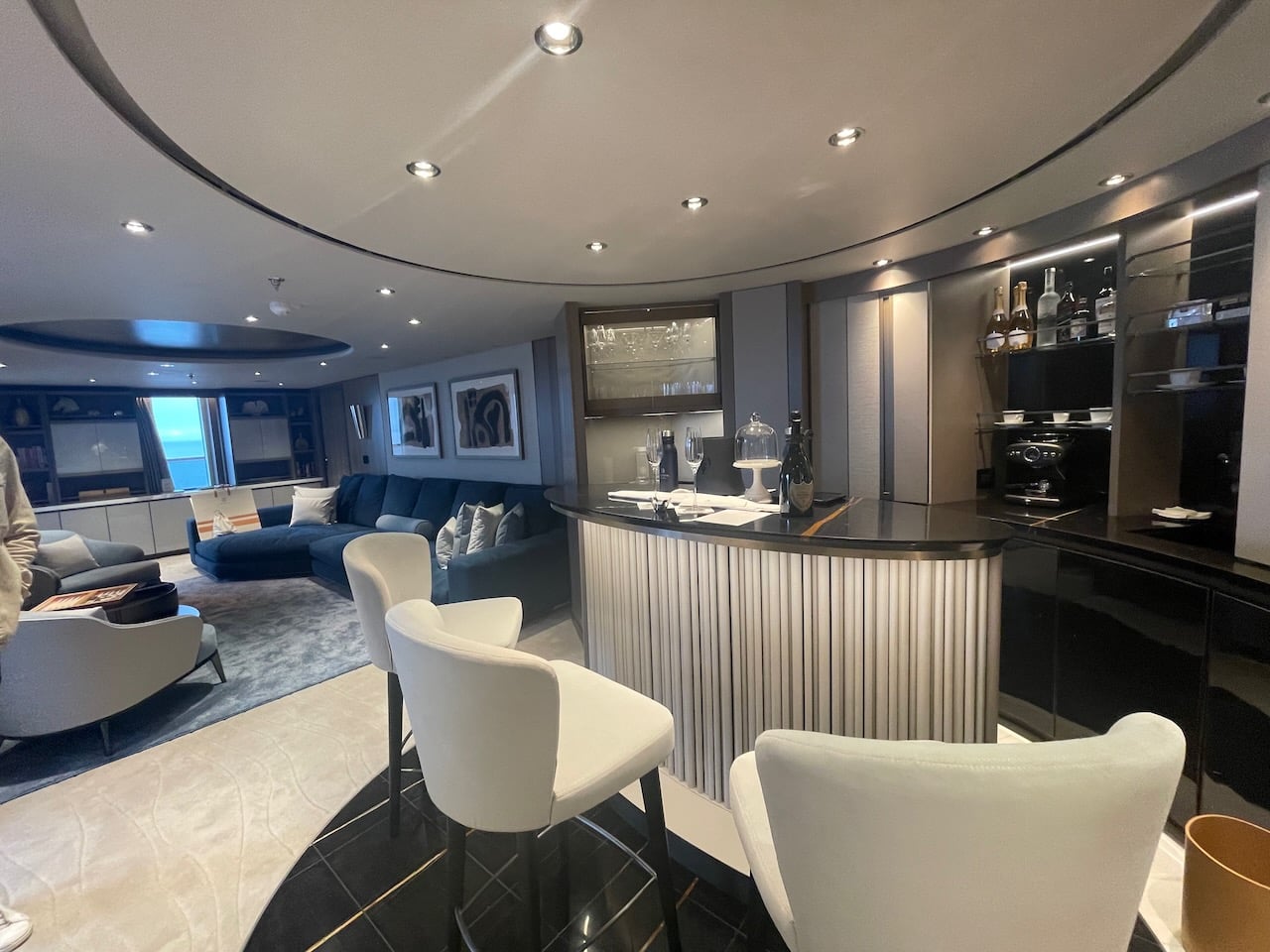De Owner’s Residence is de grootste suite aan boord met in totaal een indrukwekkende 280 m2: 155 m2 binnenruimte en 125 m2 terras met een indrukwekkende infinitypool, zeer grote woonkamer, butler bar, een aparte eettafel en een masterbedroom met badkamer inclusief stoomruimte.