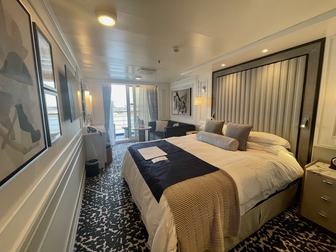 Terwijl cruiseschip Riviera van Oceania Cruises in Amsterdam lag, kon Miriam een paar uur aan boord om de uitgebreide renovatie van vorig jaar te bewonderen. Eerder cruiste Marco al mee met dit schip, maar dat was nog net voor de upgrade met de naam OceaniaNEXT. In 40 dagen tijd werden eind 2022 de suites, hutten en publieke ruimtes volledig opnieuw ingericht. Ik was natuurlijk nieuwsgierig om te zien hoe het schip er nu uitzag na deze grote veranderingen.