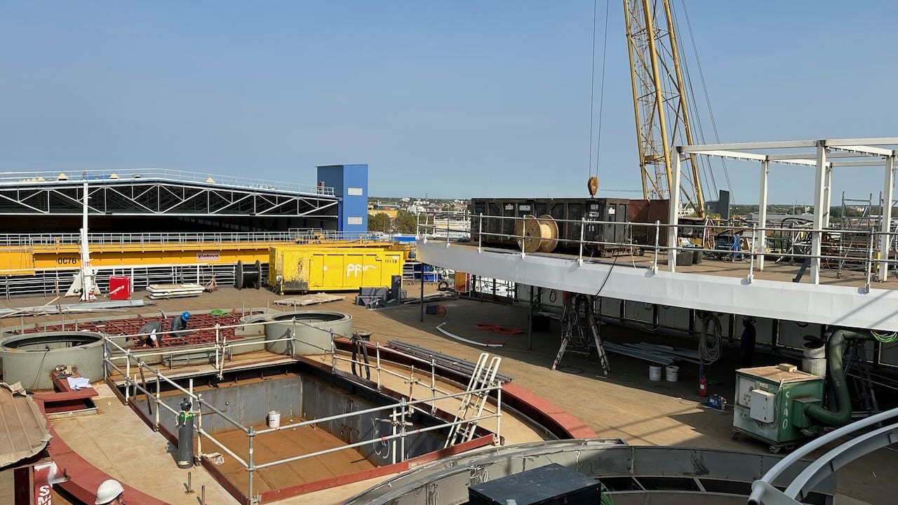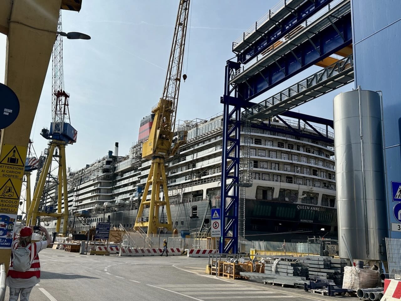 Cunard gaf afgelopen donderdag een exclusieve inkijk in de bouw van haar nieuwe schip Queen Anne in Italië. Miriam was uitgenodigd om in de Fincantieri scheepswerf in Marghera, bij Venetië, aan boord te gaan van de Queen Anne die over zes maanden in de vaart gaat komen. Samen met kapitein Inger Thorhauge en president van Cunard, Katie McAlister, gingen we op pad door het schip.