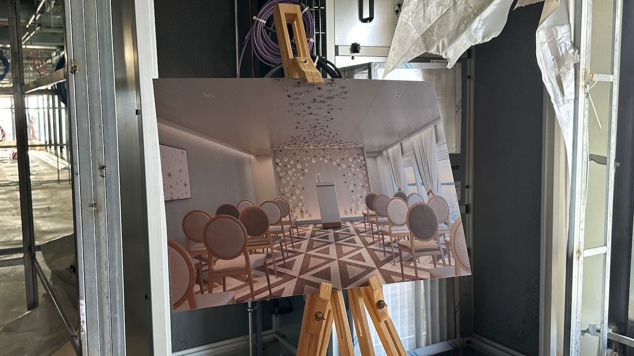 Op dek 6 kon ik al een piepklein beetje de sfeer proeven van hoe de hutten en suites eruit komen te zien. De gangen waren al duidelijk herkenbaar, de deuren ook, maar de inrichting komt beetje bij beetje. Zodra een hut klaar is, wordt deze vergrendeld en mag er niemand meer binnen totdat Cunard de eindcontrole heeft gedaan.