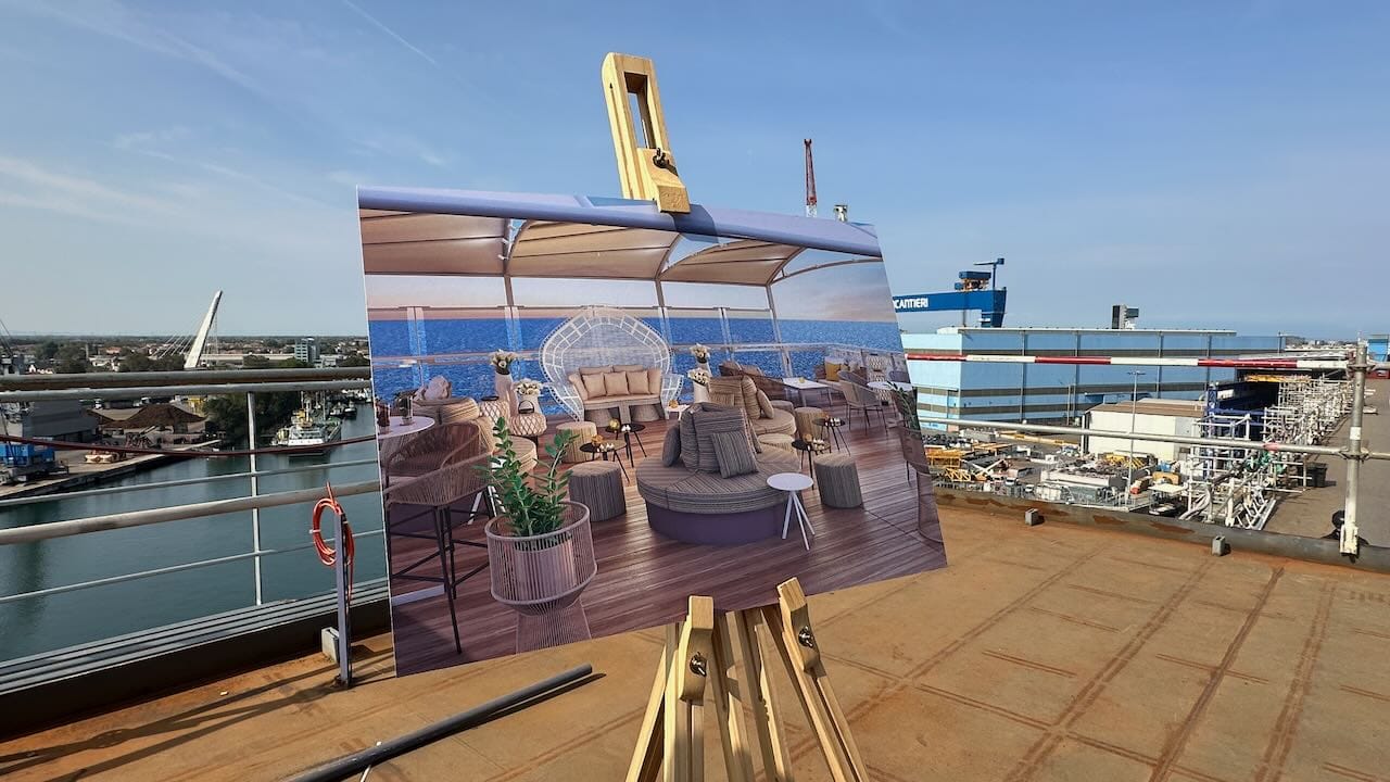 Ik moest bij de eerste stap aan boord direct denken aan een documentaire op tv van vroeger. Daarin werd de bouw gevolgd van de Queen Mary 2 die in 2004 haar eerste reis maakte. Wat heb ik toen met verwondering gekeken hoe dat Cunard schip gebouwd werd. En nu 22 jaar later sta ik zelf op een Cunard schip in aanbouw.