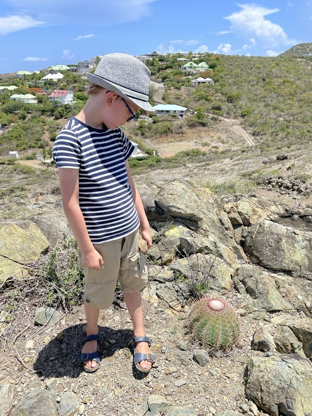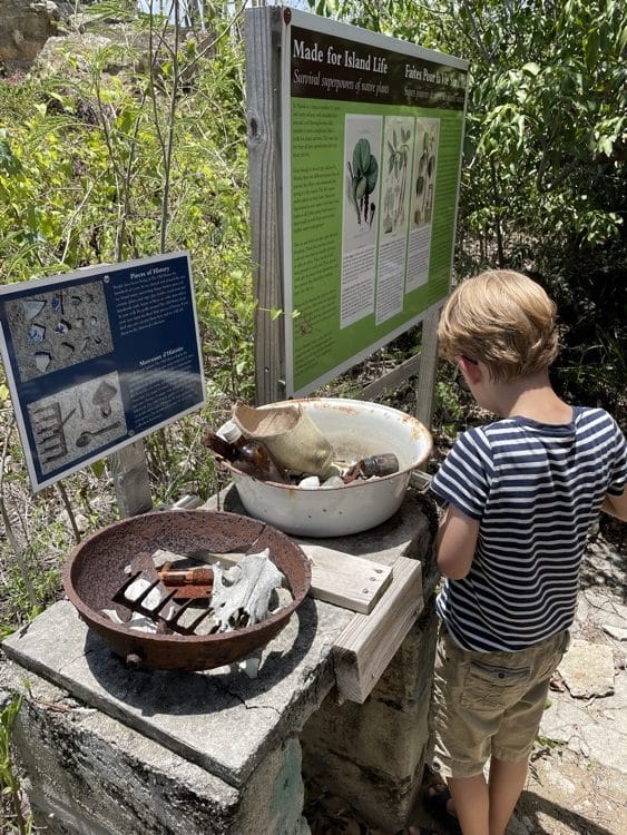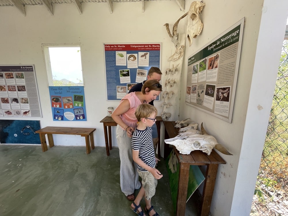 We gingen verder met onze tocht over het eiland en rede naar Amuseum Naturalis. Dit gratis toegankelijke museum vertelt over natuur, cultuur en de geschiedenis van Sint-Maarten. Helaas heeft dit museum door orkaan Irma alles opnieuw moeten opbouwen op een nieuwe locatie, een oude suikerrietplantage. Er is nog work in progress in het gebouw zelf, maar buiten kan je genieten van de tuin met lokale planten en het uitzicht op de mangroven. Onder het grote afdak is een tentoonstelling gemaakt over de dieren op het eiland. Onze jonge cruisereiziger keek zijn ogen uit bij de dieren op sterk water, zoals de veel voorkomende Groene Leguaan, de Iguana. Dit dier kan tot 2 meter lang worden, zie je overal op het eiland rondlopen, zo ook later die dag tijdens onze wandeling aan de oost kant van het eiland.