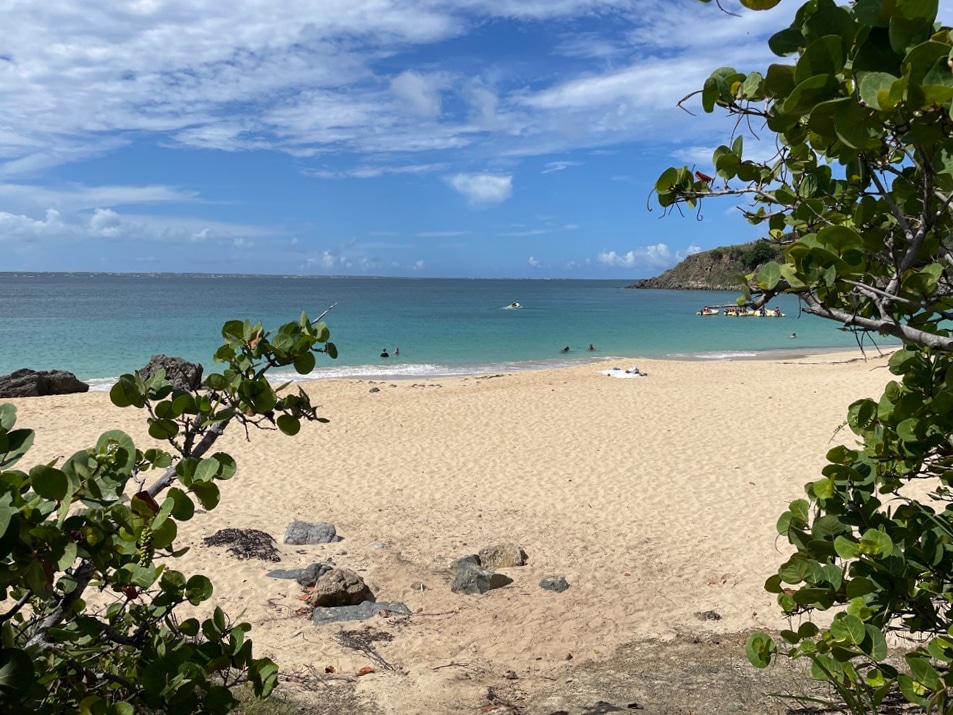 Sint-Maarten heeft talloze stranden op het eiland. De bekendste is weliswaar Maho Beach, waar de vliegtuigen laag over vliegen, maar er zijn werkelijk pareltjes van stranden op het eiland. Via een hobbelige weg kwamen we met onze bus aan bij Friar’s Bay. Daar was het al mooi, maar wij liepen via een smal pad door de kustbeplanting naar een strand verder. Je moet er een klein stukje voor lopen langs de kust en struiken, maar dan verschijnt het prachtige strand: Happy Bay. Prachtig wit zand, een paar bomen voor wat schaduw, turqoise water. Wat een paradijs! Er waren weinig mensen en dat komt doordat het toch een goed bewaard geheim. Alleen locals zul je er tegenkomen en mensen die het geheim kennen 😉