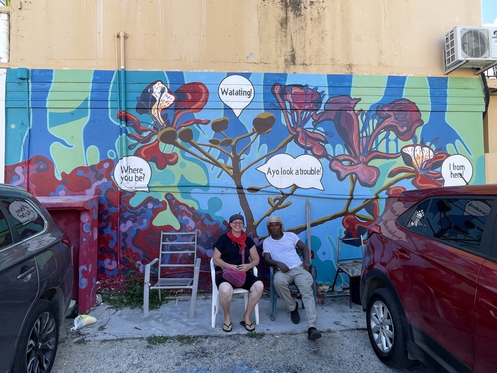 Een grote verrassing in de hoofdstad! In het centrum van de stad zie je op allerlei muren de meest fantastische schilderingen. Elk van hen vertelt een eigen verhaal. Na goedkeuring door de stichting die erachter zit, mochten de schilders zelf hun muurschilderij maken. Hoe bijzonder is het dat onze gids, Nascha, ook haar eigen muurschildering maakte. Zij symboliseert met haar tekening de speelsheid en creativiteit van alle mensen van het eiland, alle nationaliteiten. Je ziet bovendien de Flamboyant boom, die je op het eiland tegenkomt.