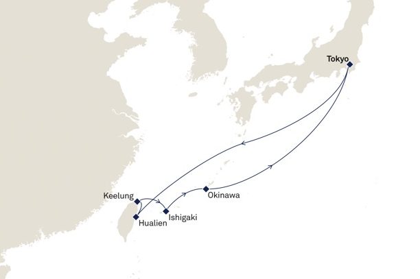 - Allereerst zijn er de oostelijke routes met Japan, die worden gecombineerd met Taiwan en Zuid-Korea. Deze worden vaak in maart en april gevaren omdat de kersenbloesems in Japan in bloei zijn.