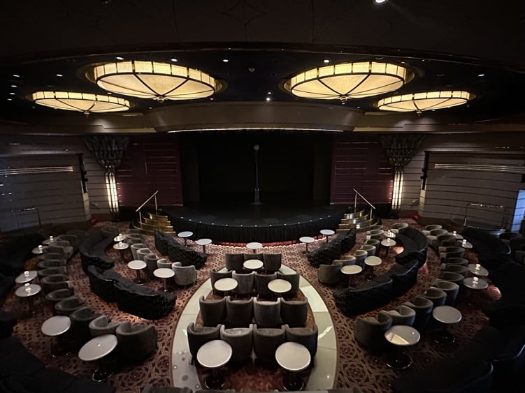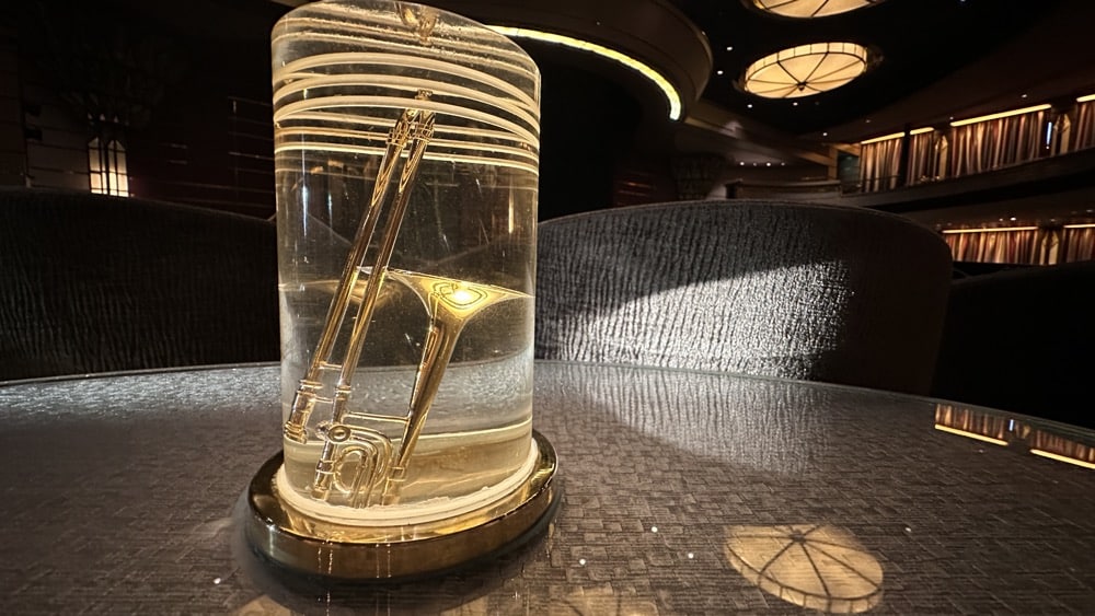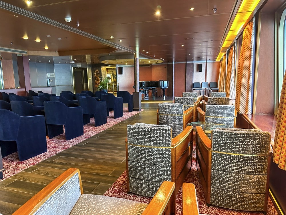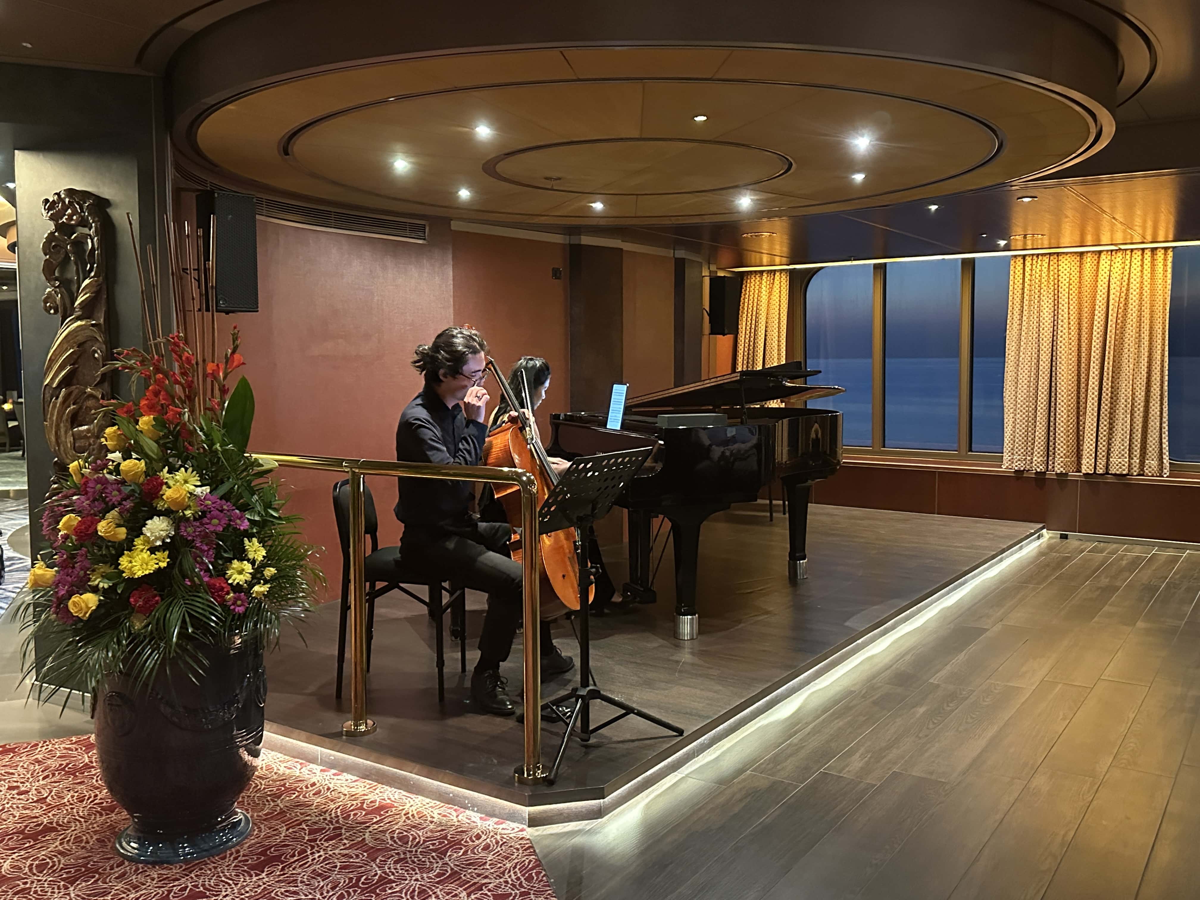 Klassieke muziek wordt in de Explorer’s Lounge ten gehore gebracht. De lounge is geheel omgetoverd tot kleinconcert zaal.