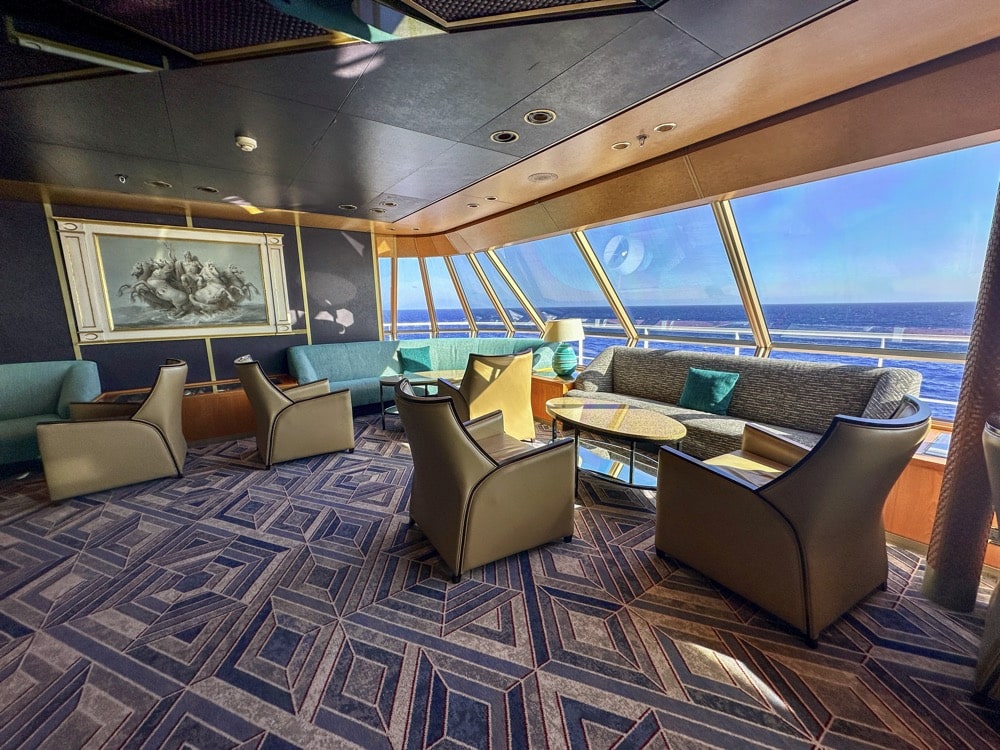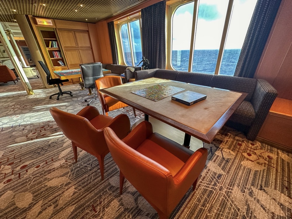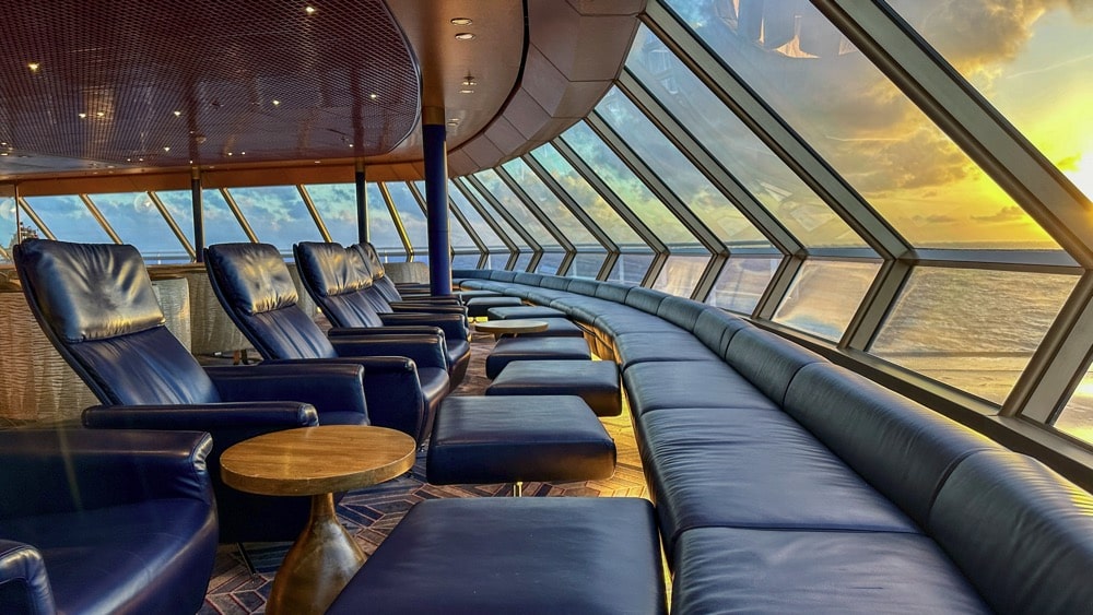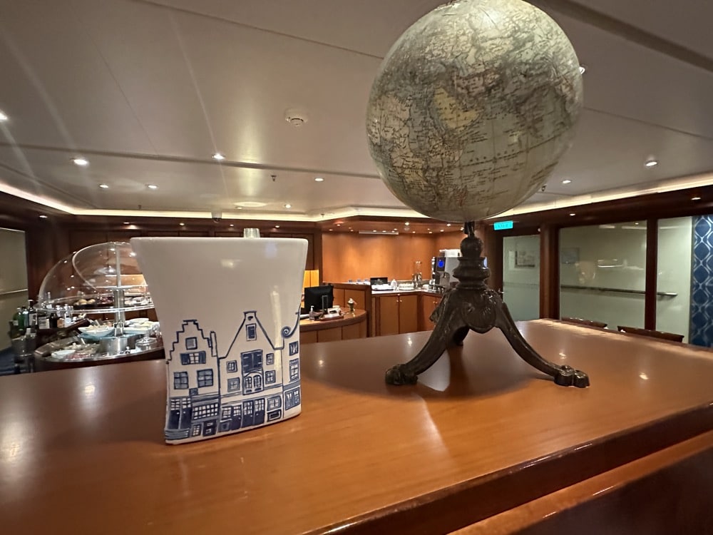 Vrijwel alle lounges op de Zaandam zijn kleine gezellige ruimtes. De Crow’s Nest is wel flink groter en omhelst de gehele voorkant, dus je hebt een fantastisch uitzicht vanaf daar. Ben je overigens creatief? Neem dan je brei/haakwerk mee op cruise, want elke morgen is er een gezellig samenzijn in de Crow’s Nest.