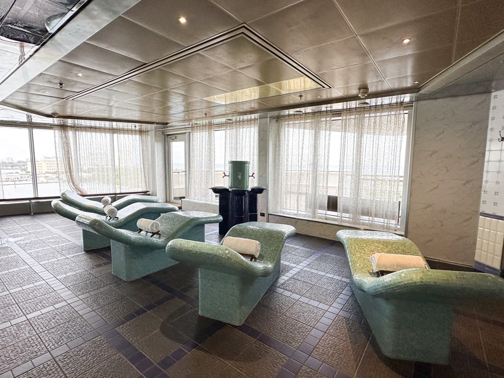 De spa zelf is niet al te groot, en is wat gedateerd. De Thermal Suite is een heerlijke ruimte waar je kunt ontspannen, een toegangspas voor de gehele cruise (16 dagen) kost je 299 dollar. Je vindt er onder andere verwarmde ligstoelen, een whirlpool, douche en stoomruimte.