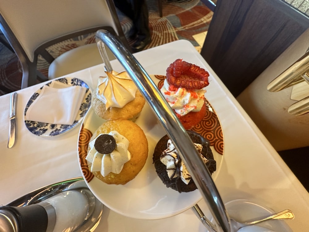 De Dining Room, is het hoofdrestaurant van de Zaandam, en is het decor voor ontbijt, de high teas en diners. Vooral de high tea om 15:00 uur ’s middags kan ik je aanbevelen: ze zijn gethematiseerd, bijvoorbeeld een cupcake high tea of Engelse high tea. De thee wordt goed heet geserveerd, dus dat is voor theeliefhebbers echt een pré! En wat een prachtige Delfts Blauwe bordjes, om verliefd op te worden!
