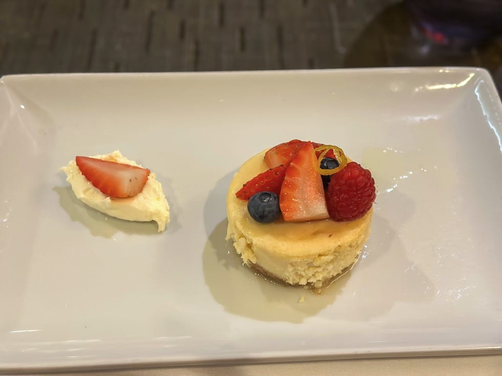 Ik koos voor de antipasti plate vooraf: met prosciutto di Parma, Terre Ducali coppa, twee soorten salami, Parmigiano-Reggiano kaas en Siciliaanse olijven. Daarna nam ik de kip in een krokant jasje van kruiden en parmezaanse kaas, overgoten met verse mozzarella. Eentje was overigens meer dan genoeg geweest, want ik kreeg er zelfs 2. Het dessert, de Lemon Ricotta Baked Cheesecake was een topper.