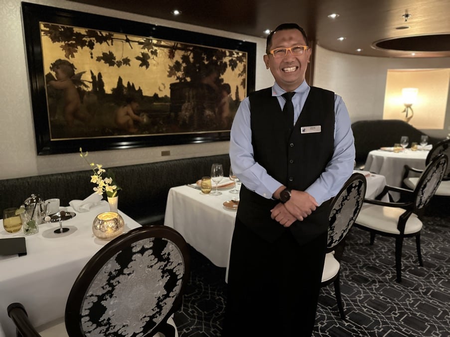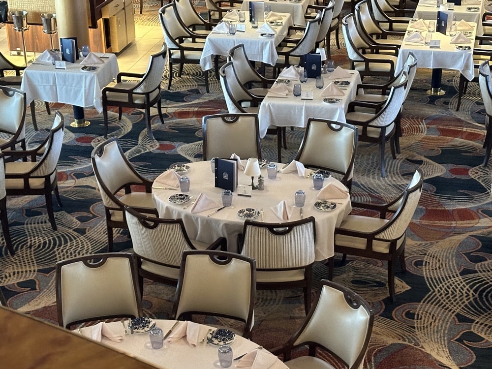 In de avond van de eerste zeedag vindt de eerste dressy night plaats. De meeste gasten hebben een mooie jurk (dames) of pak (heren) aangetrokken; gala zie je vrijwel niet. Ik dineer in stijl bij de Pinnacle Grill, een mooie kleiner restaurant met uitstekende service.