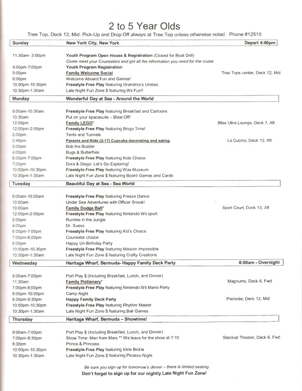 Bij Disney Cruise Line zie je daarentegen dat families wél naar de hoofdrestaurants gaan omdat daar álles gericht is op de kinderen. In de restaurants is entertainment, lopen soms characters (Micky Mouse!) door het restaurant heen en staan er altijd kleurtjes op tafel incl. een dagelijkse doe-kleur-plaat. Elke avond eet je bovendien in een ander nieuw spannend restaurant. Handig is dat je eigen obers mee-routeren.