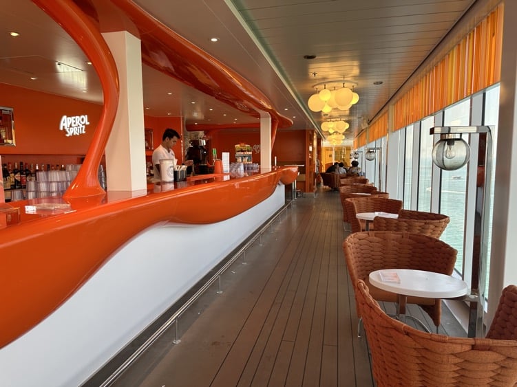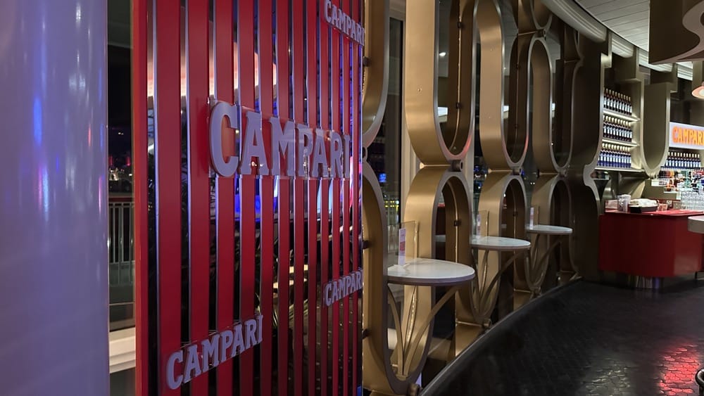 Liefhebbers van Campari en Aperol Spritz kunnen bij de merk-eigen bars terecht, waar je overigens ook andere drankjes kunt bestellen.