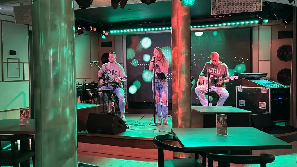 Een leuke verrassing aan boord is de Heineken Star Club & Bistro waar je met live muziek van de band, met hamburger gerechten en mexicaanse keuken.