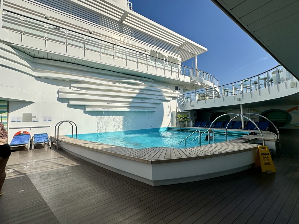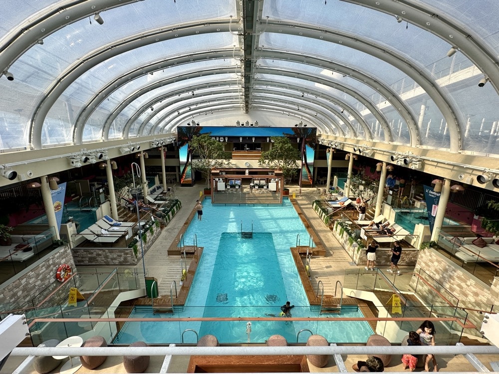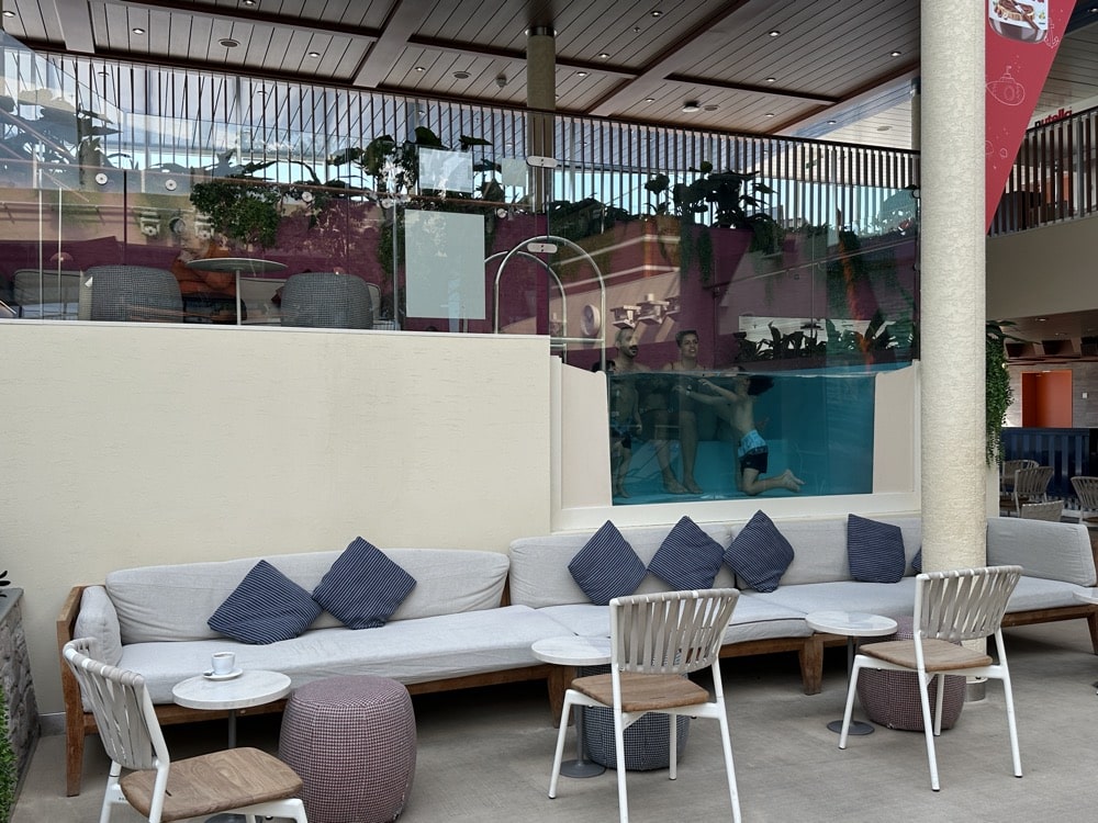 Het binnenzwembad is perfect voor als het buiten wat slechter weer is. Ook hier vind je weer zwemvesten. Bovendien kan je hier genieten van toffe whirlpools met glazen wanden aan een kant. Wat je aan boord van de Costa Toscana overigens niet vindt, is een soort van poedelbad met een klein laagje water.