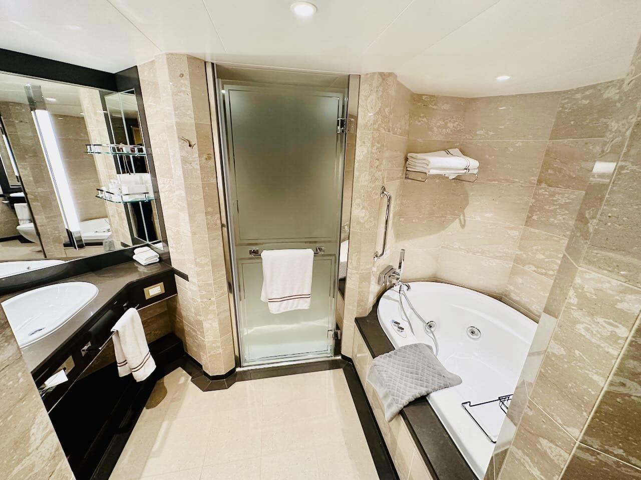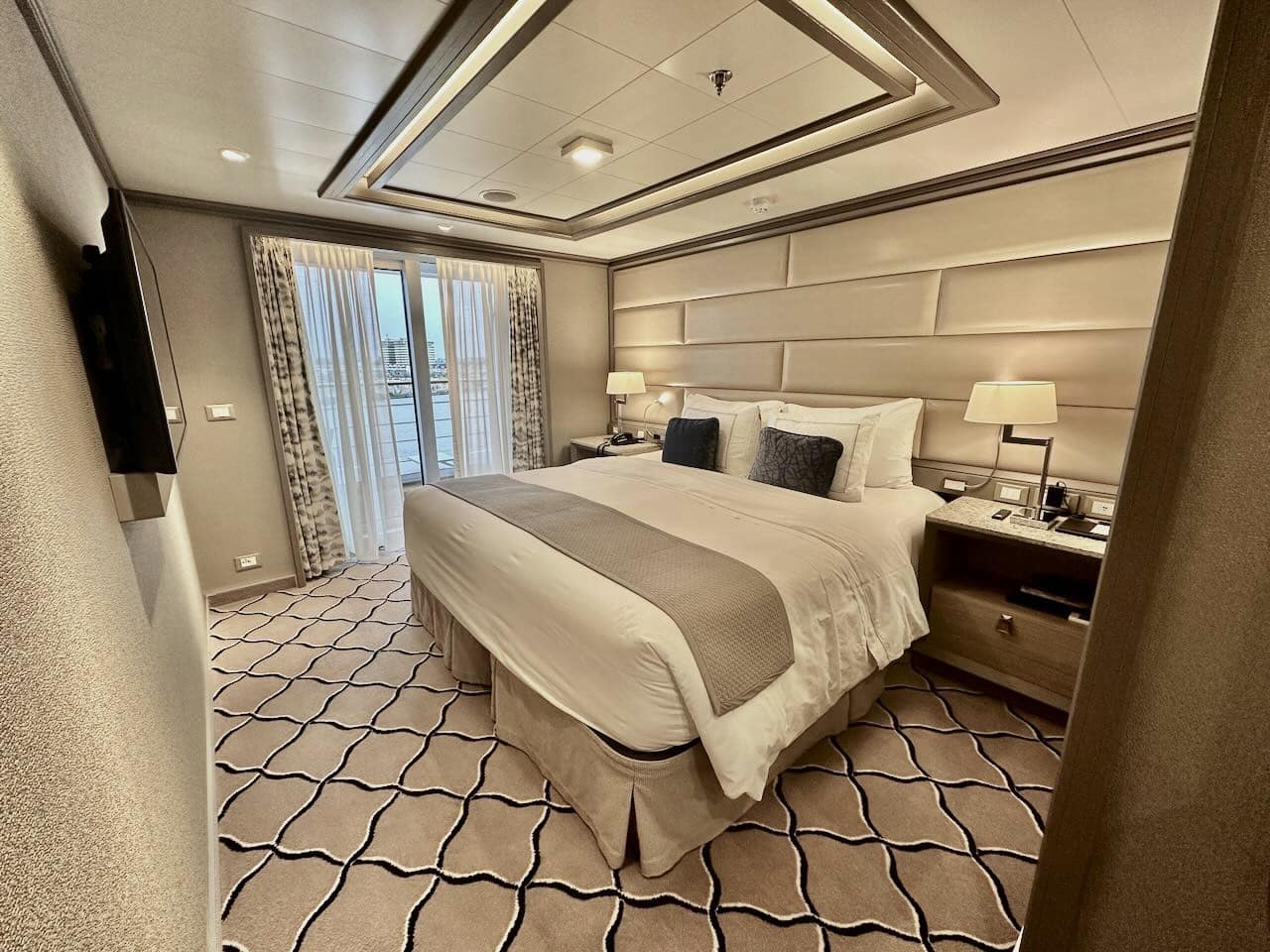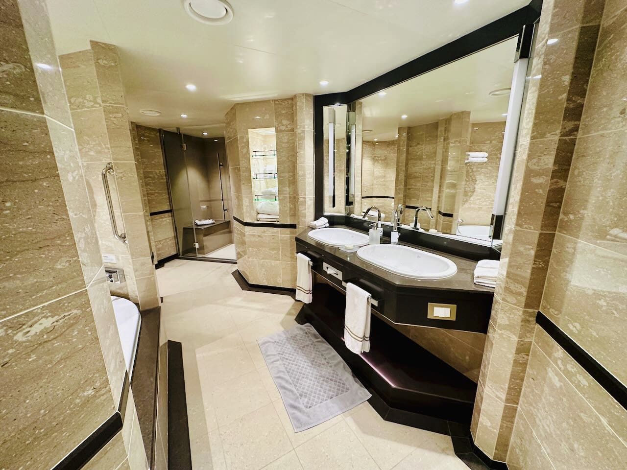 Op Seven Seas Splendor verbleef ik in een fantastische Concierge Suite, ook van 31 m2, met een zeer indrukwekkend balkon en balkonmeubilair. Een mooie suite met veel extra’s en een heerlijke badkamer met bad, douche en badproducten van L’Occitane! Prijs: vanaf ca. €5300 incl. fooien, drankjes, excursies, wifi, specialiteitenrestaurants etc.