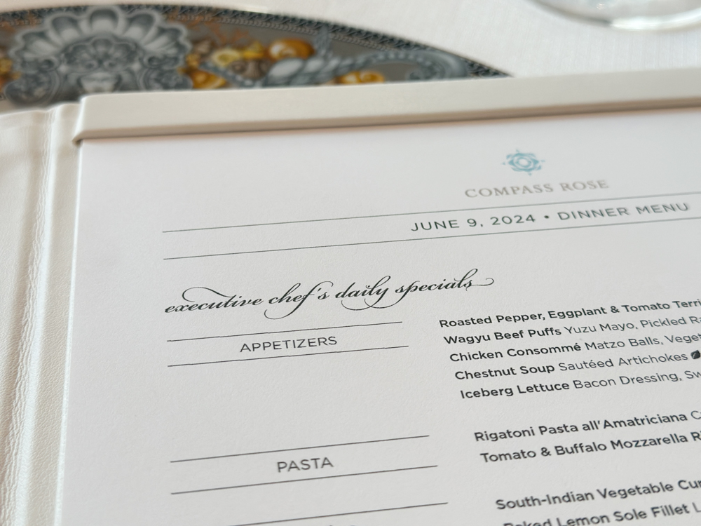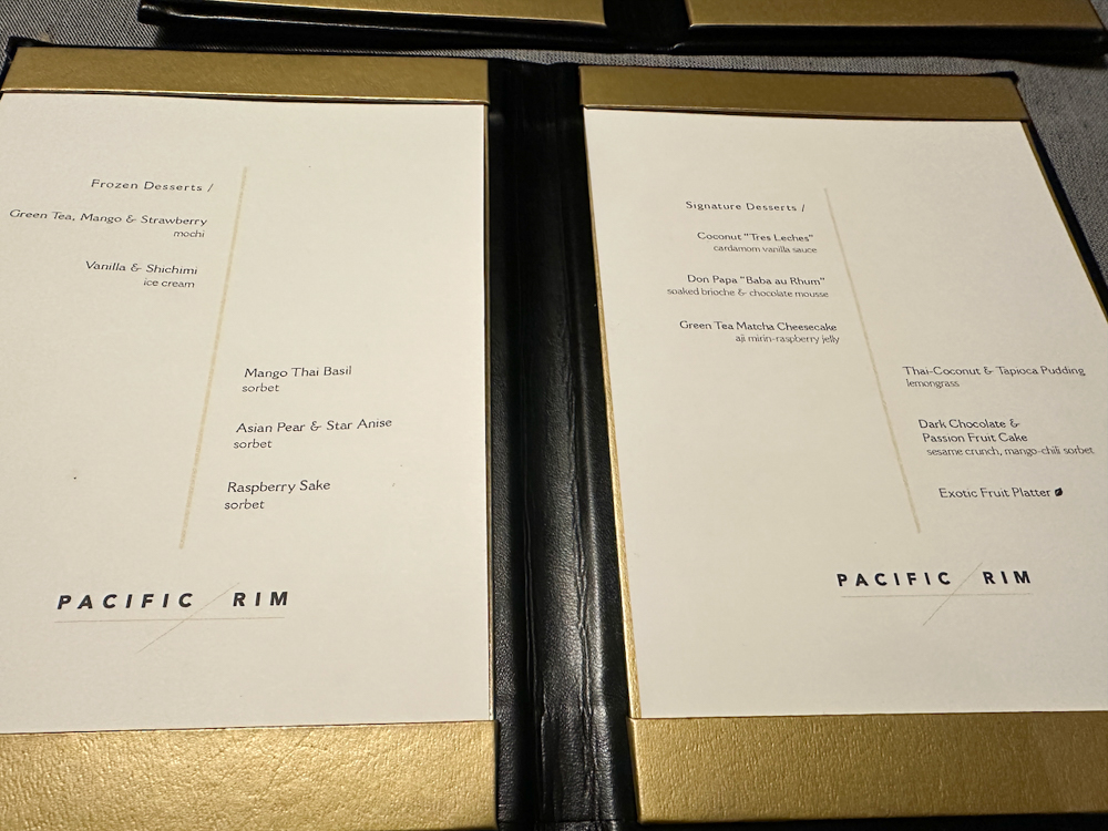 We komen nu bij de specialiteitenrestaurants: ze zijn inbegrepen bij Regent Seven Seas, maar om iedereen een kans te geven in een van de drie te dineren, reserveer je vooraf een tafeltje. Overigens zou je ook nog altijd kunnen informeren bij de ingang van het restaurant of er nog een tafeltje vrij is. Ik sprak één van de gasten aan boord en zij probeerden het wat later op de avond, met geluk!Pacific Rim