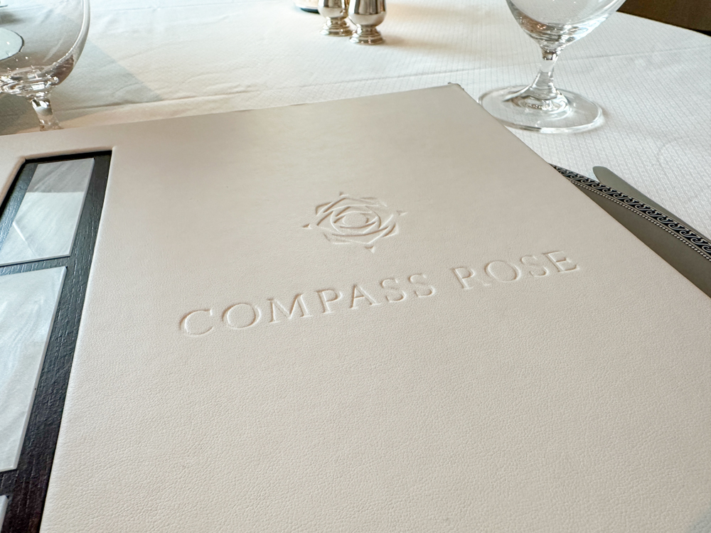 Compass Rose heeft een indrukwekkend menu: zo is er een gehele pagina gewijd aan gerechten die elke dag beschikbaar zijn en die je tot in de puntjes zelf kunt samenstellen: 7 soorten vlees/6 soorten vis/ 13 soorten saus en 15 soorten bijgerechten zoals aardappel en groente. Daarnaast is er elke avond een menu dat varieert. Noemenswaardig is zeker het ‘menu dégustation’, een menu waarin je in kleinere porties de topgerechten van de chef proeft.