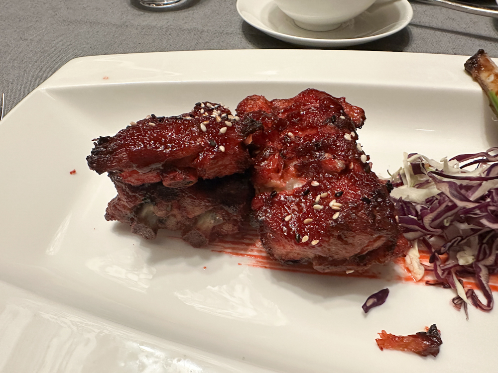 Wij proefden de verrassende Peking eend & watermeloen salade, de tonijn tartaar en de smakelijke Beef Tataki Rolls. Als hoofdgerecht nam ik de Chinese Barbecue Pork Ribs. Een mooi goed gebalanceerd gemarineerde schotel.