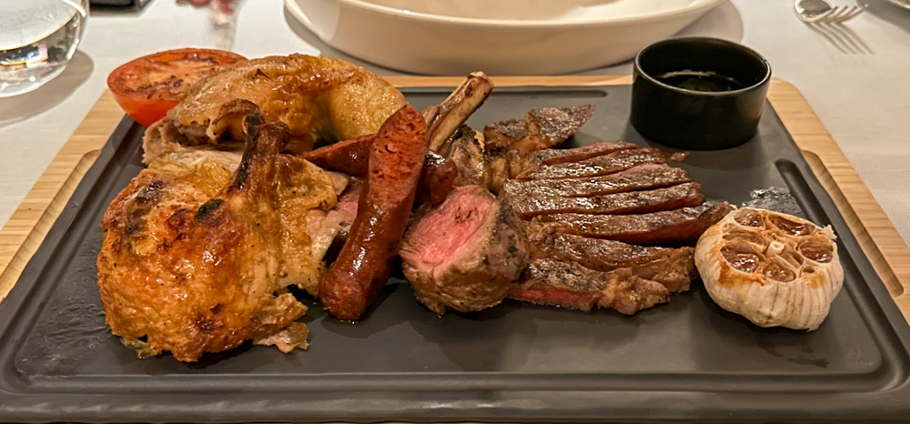 Wij kozen voor onder andere fameuze Wagyu rundvlees als voorgerechtje en lam in twee variaties als hoofdgerecht. Bij de desserts was het lastig kiezen, dus koos ik er twee: een kaasplank en een soufflé. Dat mag overigens altijd, als je zin hebt in meer voorgerechten of desserts, of als je niet kunt kiezen. Je kunt ook om raad vragen, want de obers weten precies welke gerechten geliefd zijn.