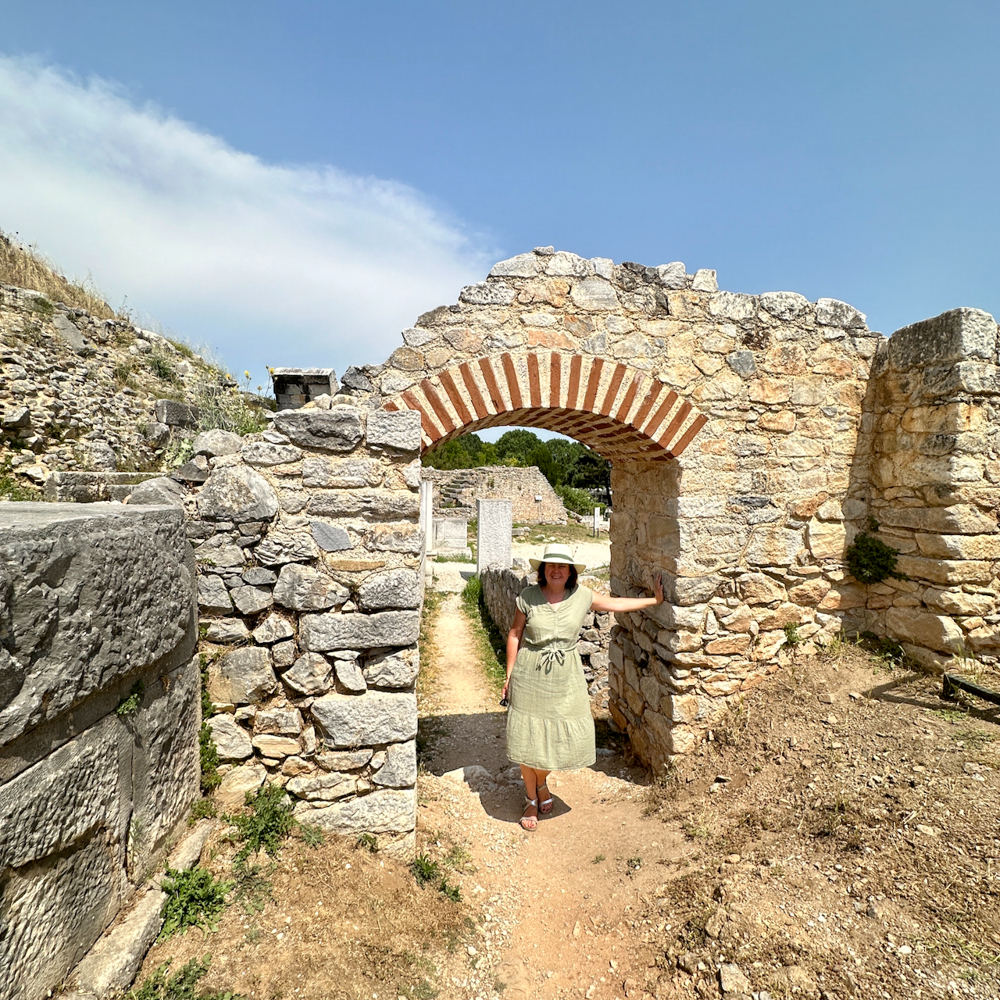 De excursie vanuit deze haven gaat naar de antieke stad Philippi, een archeologische plek waar je restanten ziet van een stad die zo’n 4000 jaar tot 1600 jaar geleden floreerde, dus onder andere in de Romeinse tijd. De stad lag op de route van het huidige Istanbul en Rome, een essentiële Romeinse route. Bij binnenkomst van deze site, zitten en lunchen Griekse families gezellig onder de schaduw van de bomen. Onze gids is een dame die zeer boeiend vertelt over het de opgravingen en het leven in deze stad. De tour was voorbij voordat we het wisten. Een aangename verrassing!