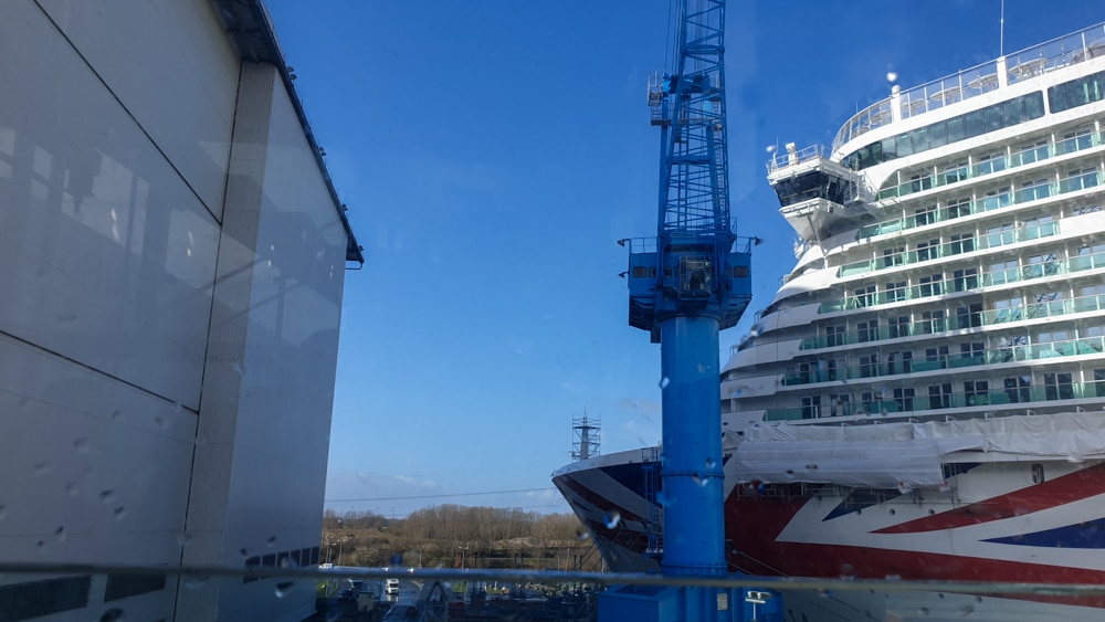Wanneer een immens cruiseschip opgeleverd wordt en uit het bouwdok vaart, is het een groot feest. Toeschouwers mogen vrij dichtbij komen om de eerste glimp op te vangen. Daarna worden de schepen over de rivier Eems gesleept naar open zee.