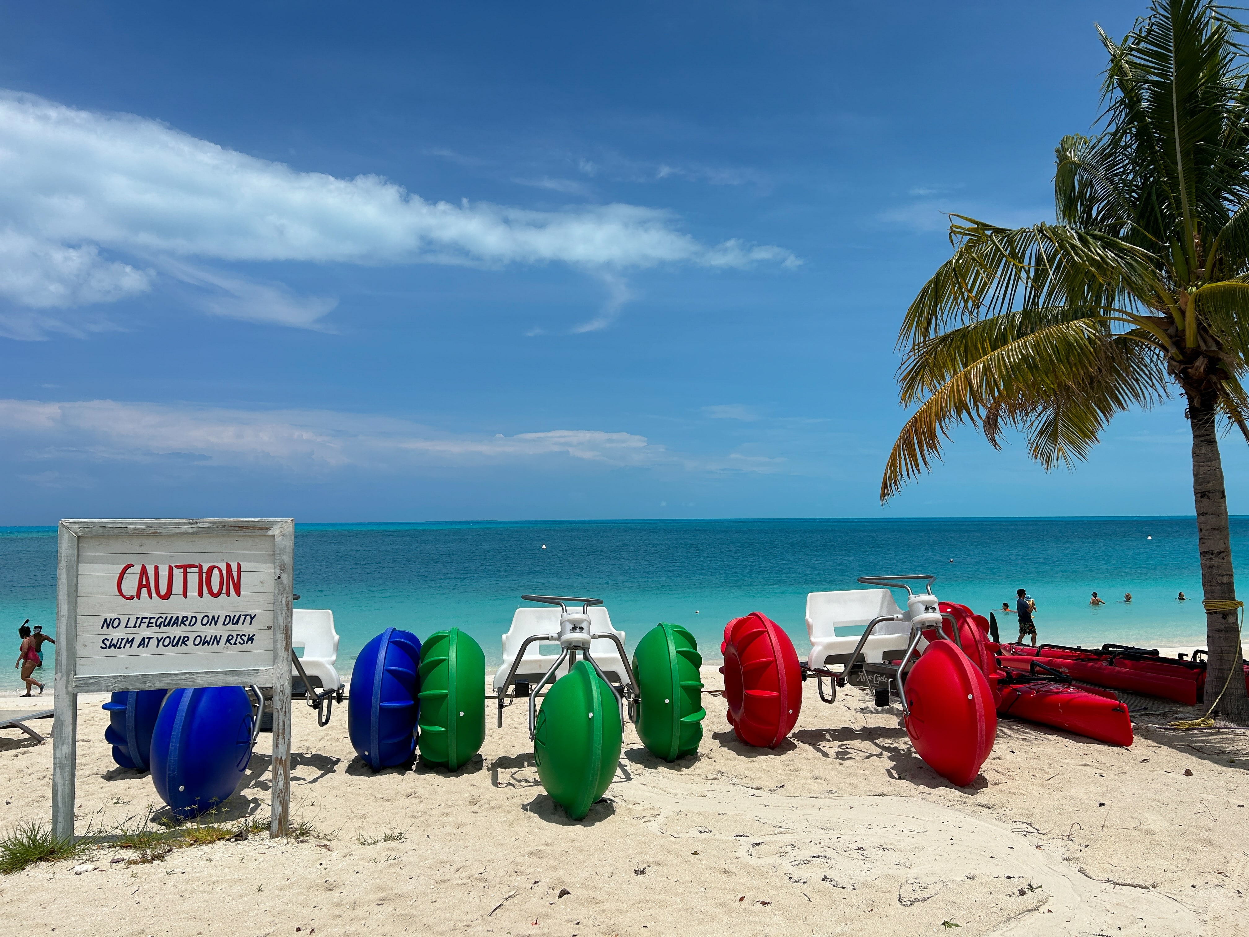 Het meest ruige strand vonden wij Sunset Beach. Op onze dagen op Ocean Cay waren hier de meest ruige golven. Er is op dit strand géén toezicht. Wel vind je er bars met leuke namen als Pineapple of Cactus bar. Ook zijn er ligbedden en lounge stoelen. Wat verderop staan rotstorentjes en is een leuke activiteit om te maken met kinderen.
