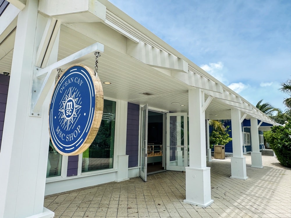 Loop je wat verder door, dan kom je bij een klein aantal houten gebouwen in de Ocean Village waar winkels in zitten. Deze zijn gethematiseerd: bijvoorbeeld een winkel met merchandise van de MSC Foundation en de anderen met praktische spulletjes, en uiteraard souvenirs van de Bahama’s. Wij kochten hier wat lekkere zeep! Ook is hier een Lost&Found punt, waar je verloren spullen kunt brengen en hopelijk terugvinden.