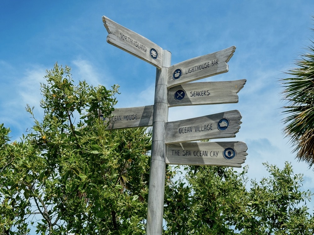 Daarnaast zijn er over het gehele eiland wandelpaden aangelegd, die vaak naast de wegen liggen voor de golfwagen karren. De palen geven aan waar je naar toe kunt.
